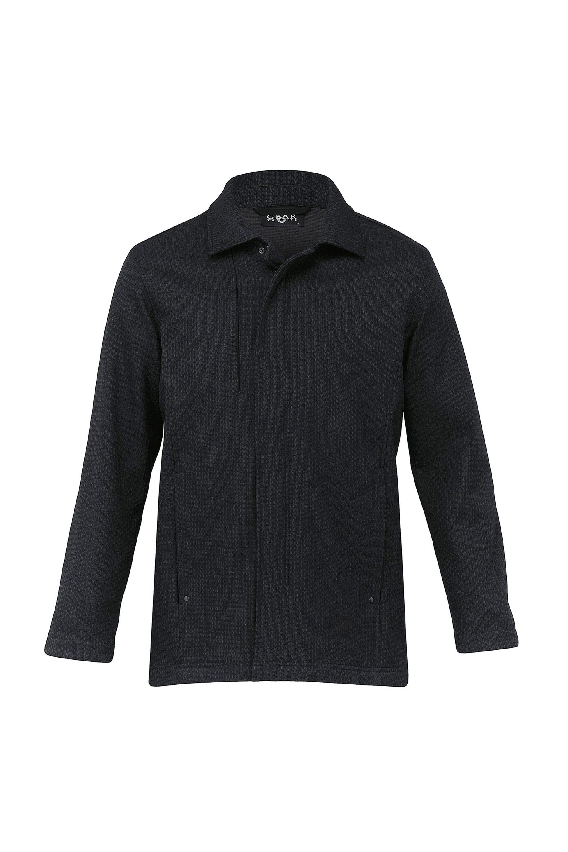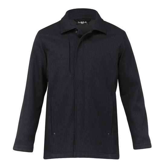 100% polyester herringbone softshell bonded with anti-pill microfleece. Tapered fit mens jacket with two piece self fabric collar and concealed zippered plaquet with hidden domes and external storm flap. Welt zippered chest pocket/, side panel detail/, top stitch detailing/, welt side pockets with MP3 exit and rivet detail. Wind resistant/, breathable/, showerproof and a water repellant rating of 5000mm.