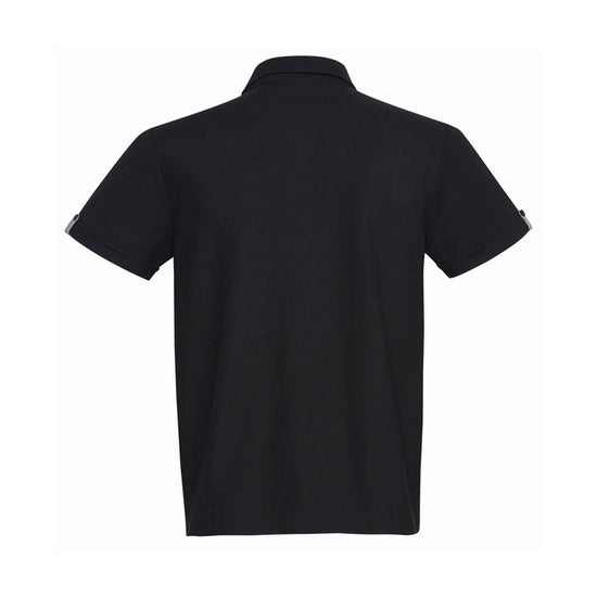 A classic black polo with a twist. The addition of black and white woven check fabric trims and a functioning chest pocket creates a smart, dressed up appearance