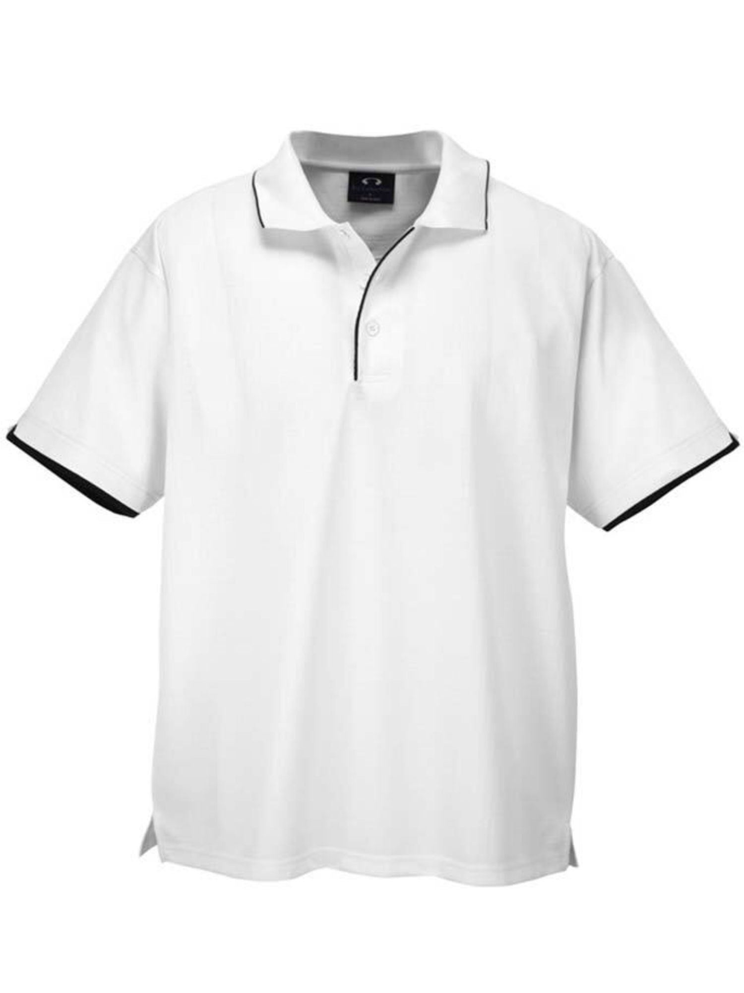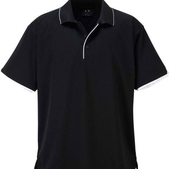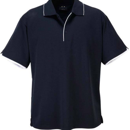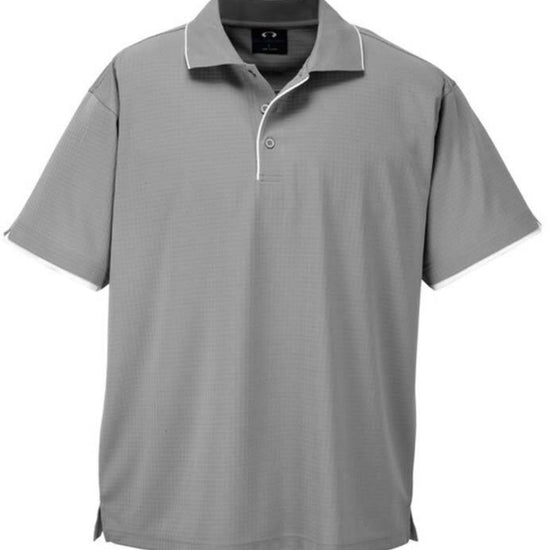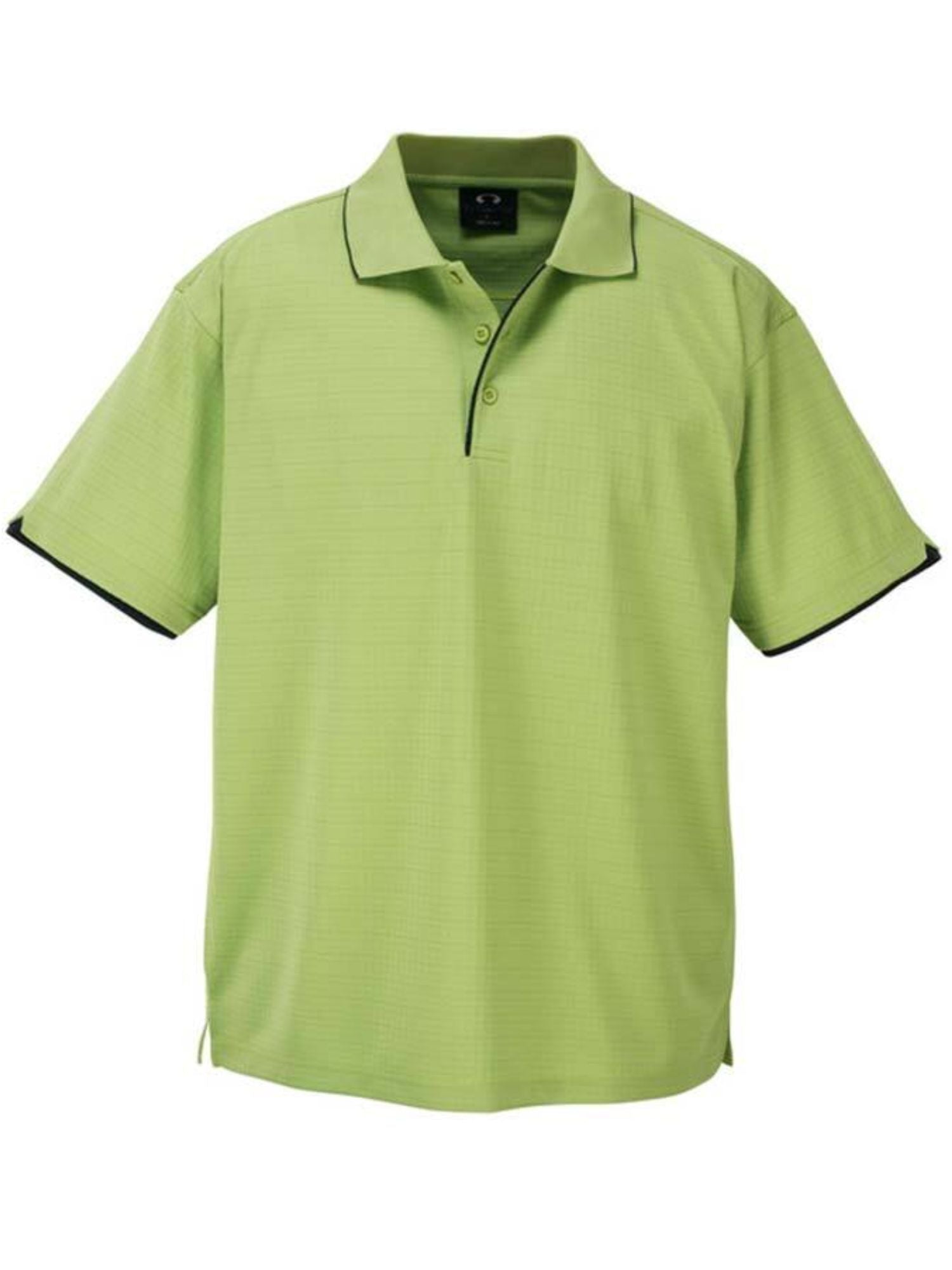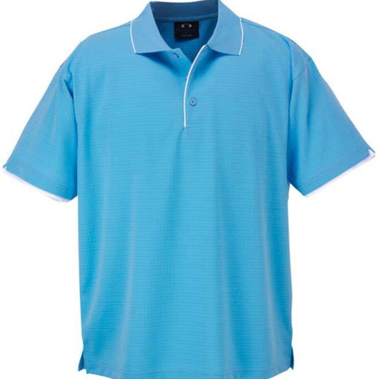 Mens Self-Check Polo with contrast self fabric trim on the placket and sleeve hem/, and contrast tipping on a knitted collar. Includes a loose pocket and side splits. Made from 100% Breathable Polyester/, 170 GSM and excellent UPF rating.