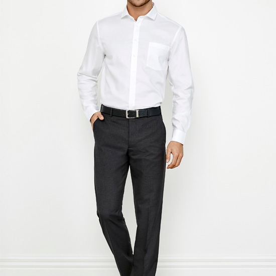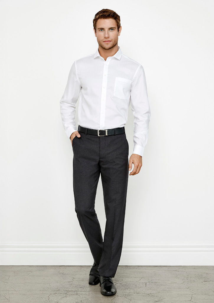 Mens plain front trouser with two back pockets. Polyviscose fabric with mechanical stretch.
