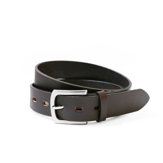 Simplicity is sometimes the most sophisticated choice. This classic jeans belt features a clean-cut smooth matte strap of genuine leather, paired with a satin brushed nickel buckle.