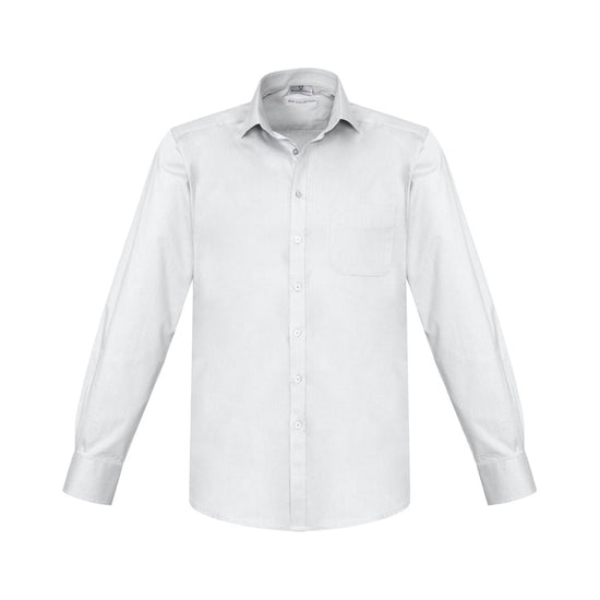 Features modern collar, chest pocket and adjustable cuff. Also features a curved hem which can be worn in or out. Built in stretch for superior comfort
