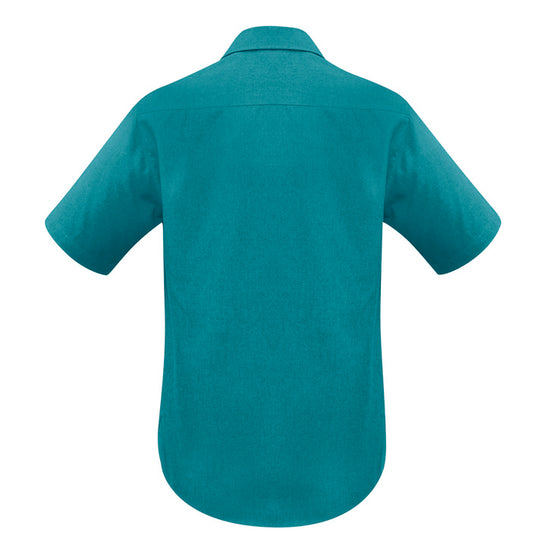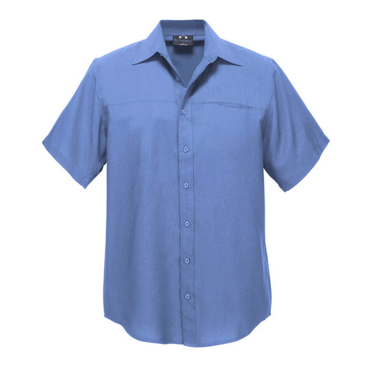 The Men's Oasis semi fitted shirt fabricated in the BIZ COMFORTCOOL fabric which has superior mositure wicking ability keeping you cool and comfortable. Open neckline with slimline placket front in a linen-like flecked fabric appearance. 100% Breathable Polyester fabric is easy care , this style can be worn tucked in or out and has a handy chest pocket with penline.
