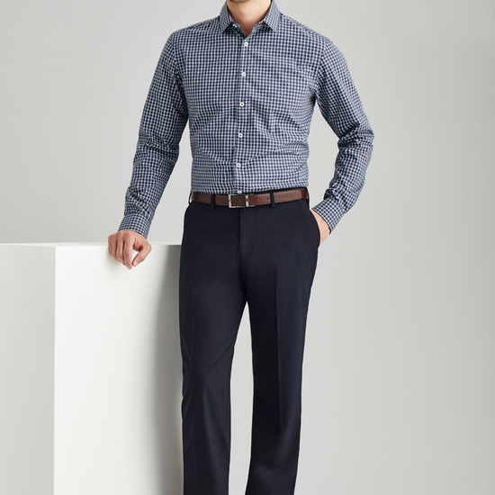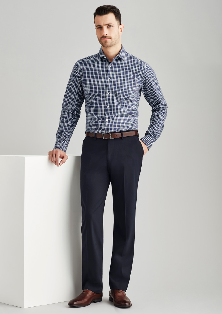 The Comfort Wool Stretch Flat Front Pant with a straight through leg is the perfect addition to your corporate wardrobe. It features waistband with stretch fusing and internal security pocket on the right front pocket and two rear pockets. These pants are constructed in a premium wool blend suiting with polyester for durability and added stretch and comfort of elastane
