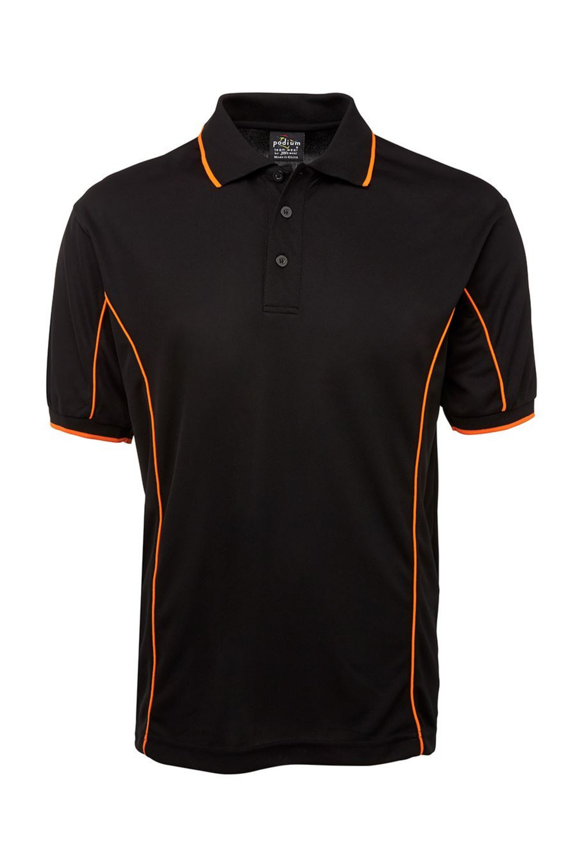 Men's Poly Piping Polo SSL - Black/Orange