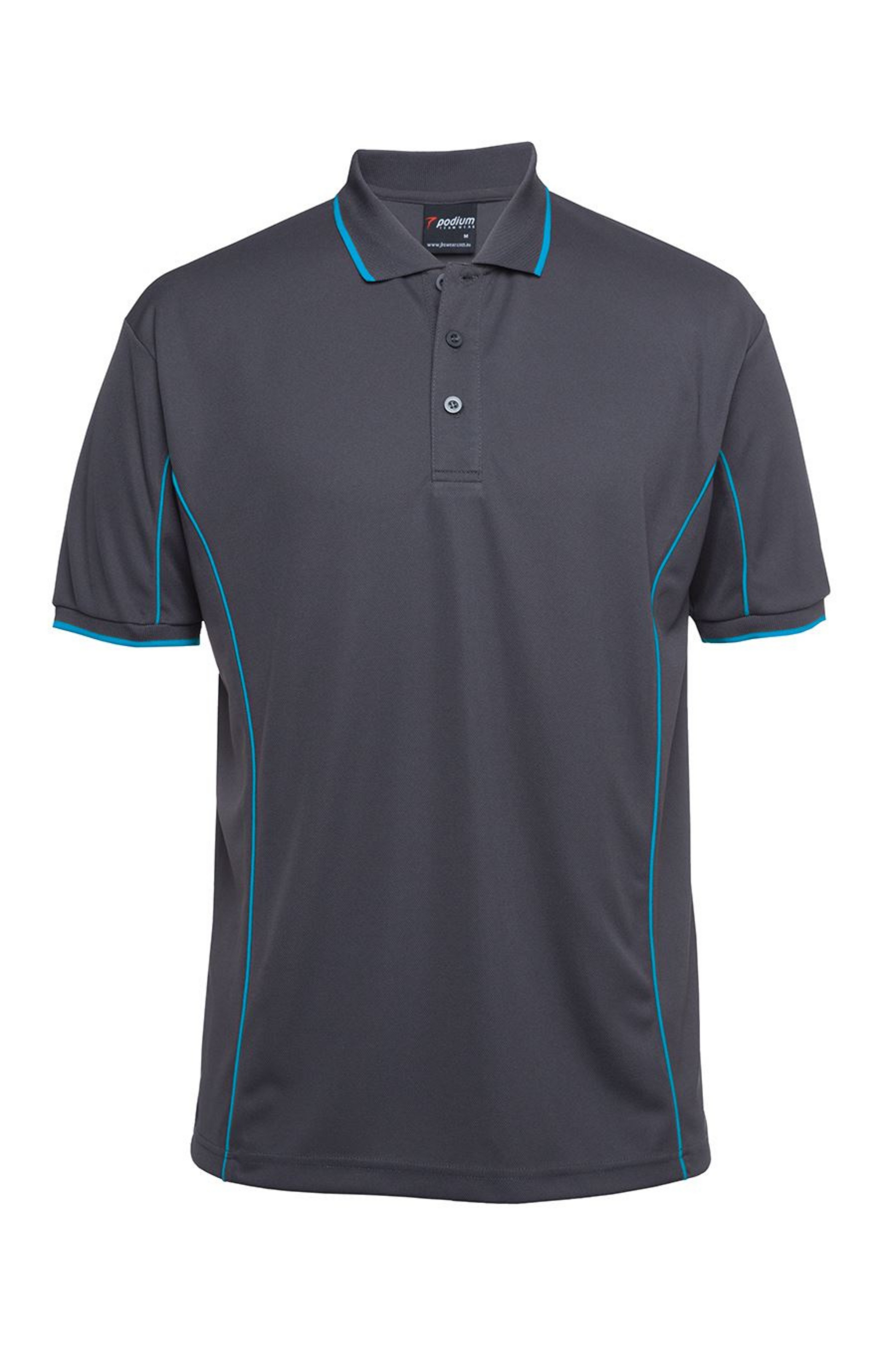 Men's Poly Piping Polo SSL - Charcoal/Aqua