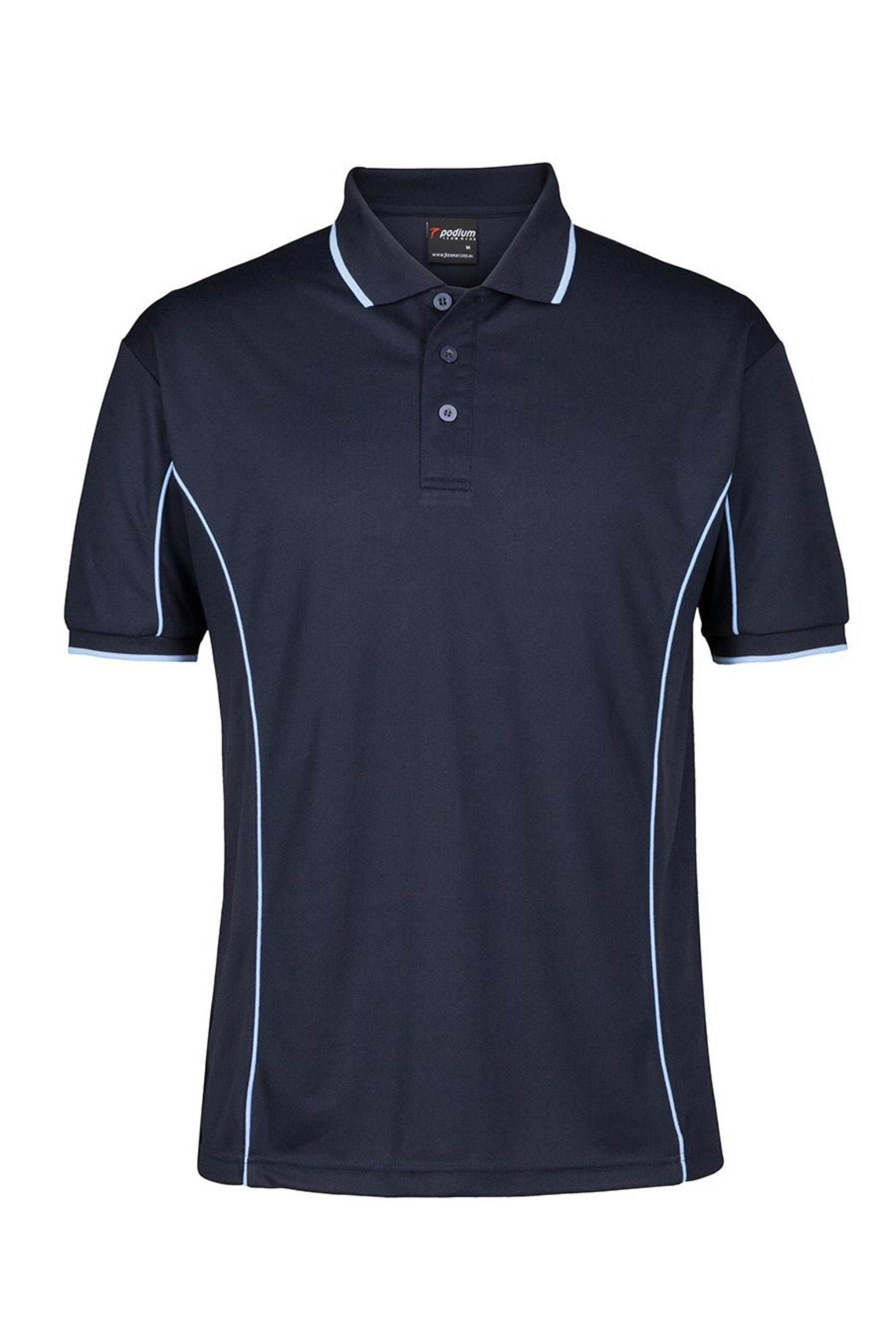 This is a stylish and functional mens polo with moisture wicking fabric to keep you cool and dry all day long. The contrasting piping detail allows for a bit of style and distinction for your team and the classic fit with 3 button placket will suit everyone.