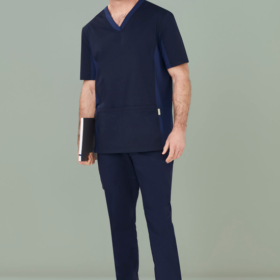 Our Mens Riley Slim Leg Jogger Scrub Pant provide ultimate comfort whilst giving a clean look. Designed for breathability and soft hand feel. Featuring a navy knit waistband and drawstring for extra comfort and security, as well as a knit hem cuff for an extra touch.
