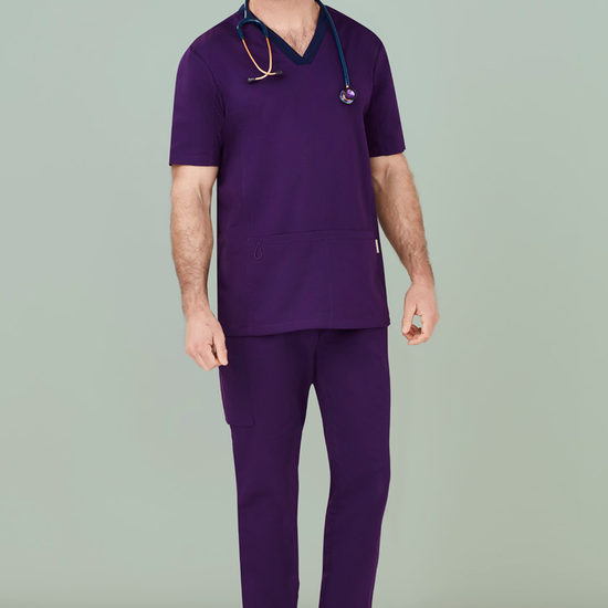 Our Mens Riley Straight Leg Scrub Pant are designed for comfort whilst giving a clean look. Made using cotton rich fabric for breathability and soft hand feel. Featuring a navy knit waistband with a drawstring for extra comfort and security to get you through the day with ease.