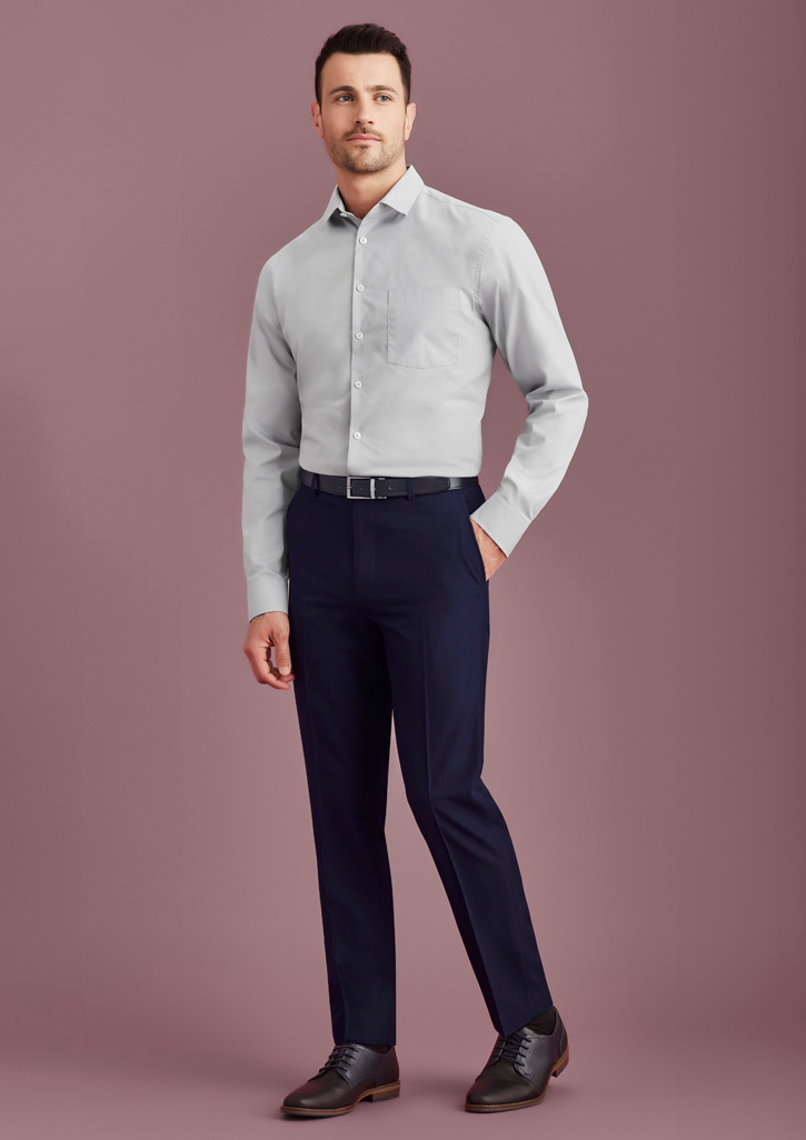 The Men's Slim Fit Flat Front Pant is tailored from soft polyester viscose fabric with a refined modern slim leg shape and pressed creases for a polished look. it features two functional jet pockets and the back with button closure and a two angled side pockets. This lightweight and easy care, breathable style would match perfectly with other styles in the Siena range, suitable for corporate and non-functional healthcare roles.