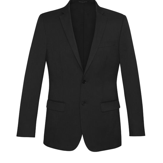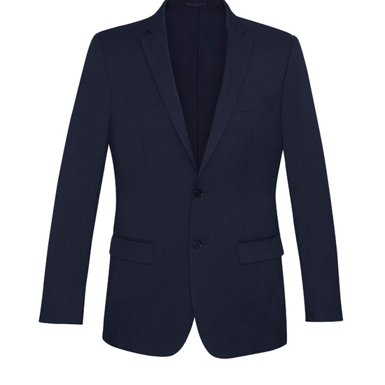 Men's slimline cool stretch jacket, a tailored slimline fit, creating a fashionable modern look. Features a narrower lapel with higher notch point on the lapel. Two rear vents and contrast lining piping. Versatile and durable suiting fabric that is breathable fabric perfect keeping you cool and dry. Mechanical stretch for extra comfort.