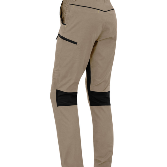 Unique stretch pleating at the front pockets and above knee for added stretch