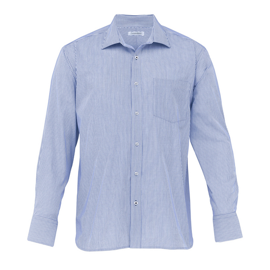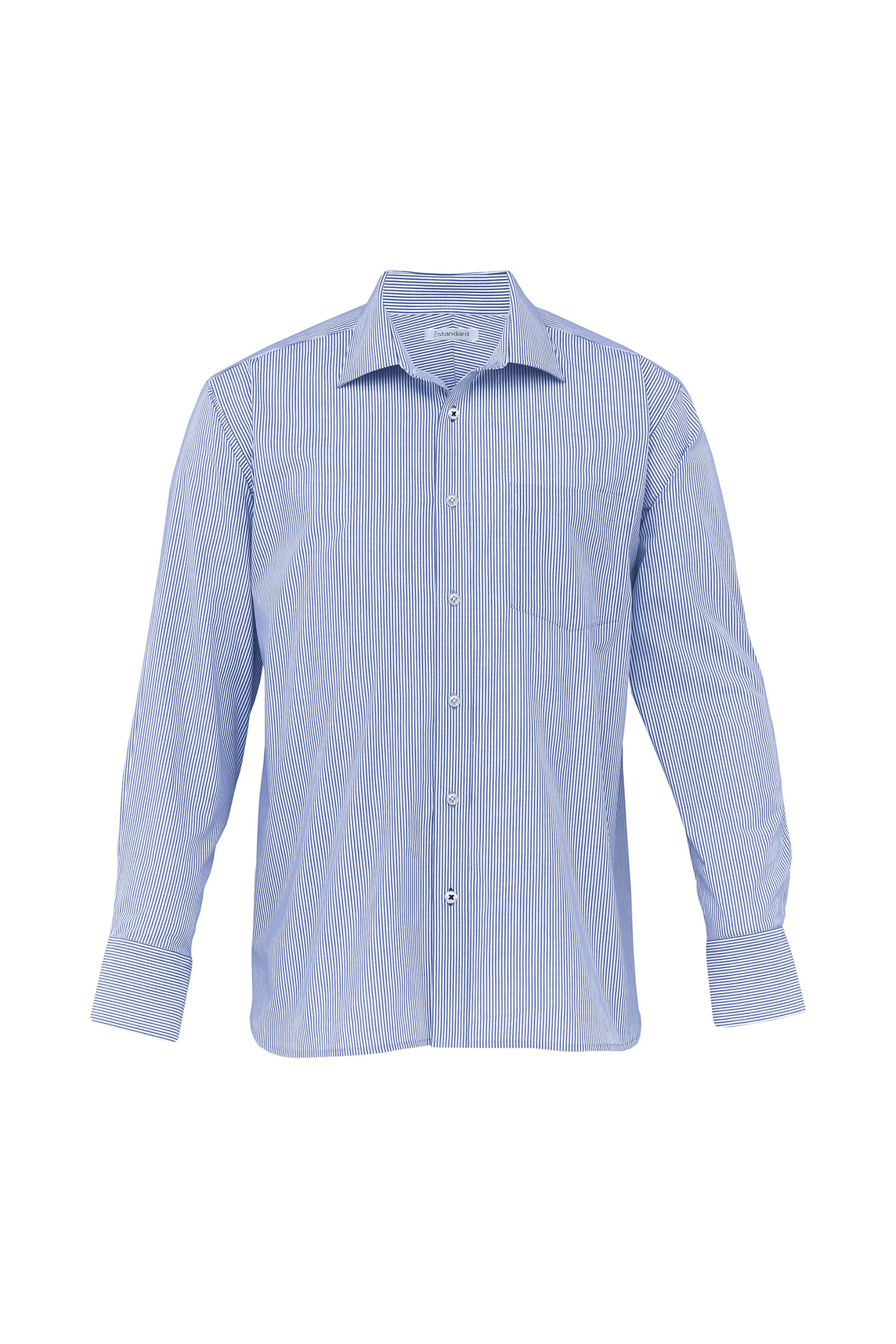 62% Polyester/, 35% cotton and 3% freefit yarn dyed stripe. Classic fit. Mitred corner detail on cuffs. Single breast pocket. Contrast stitch detailing on selected buttons.