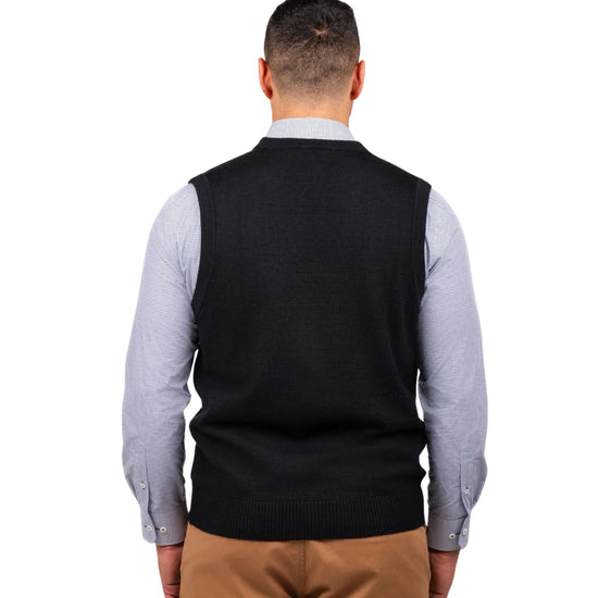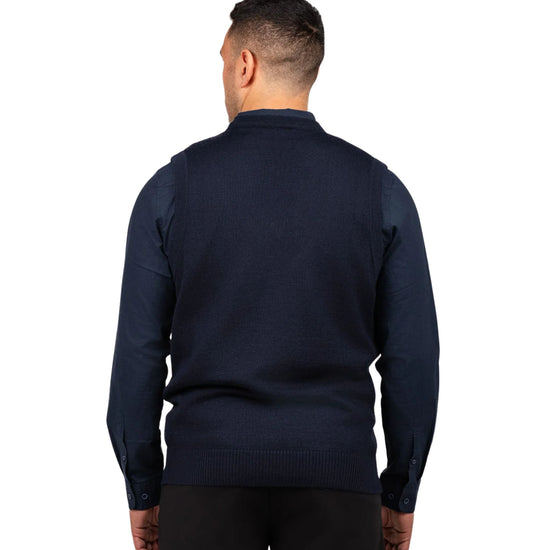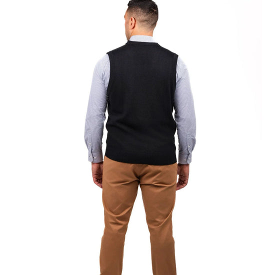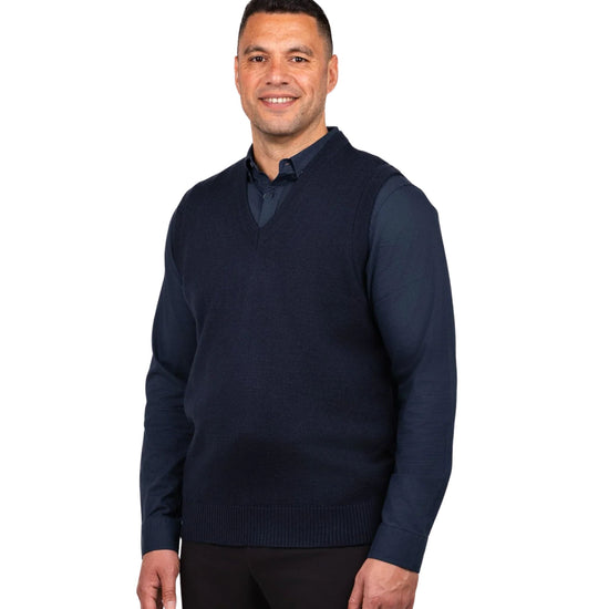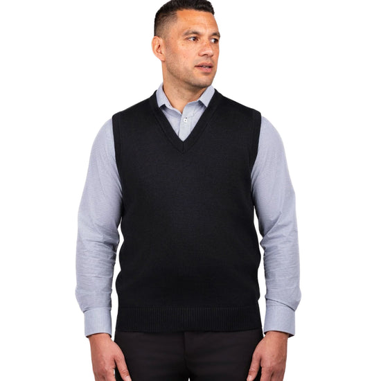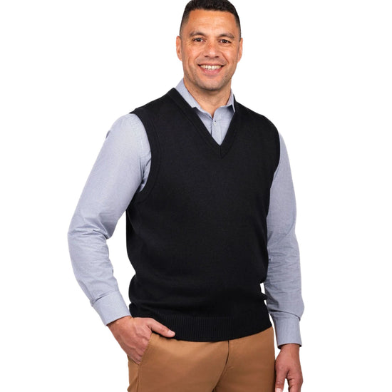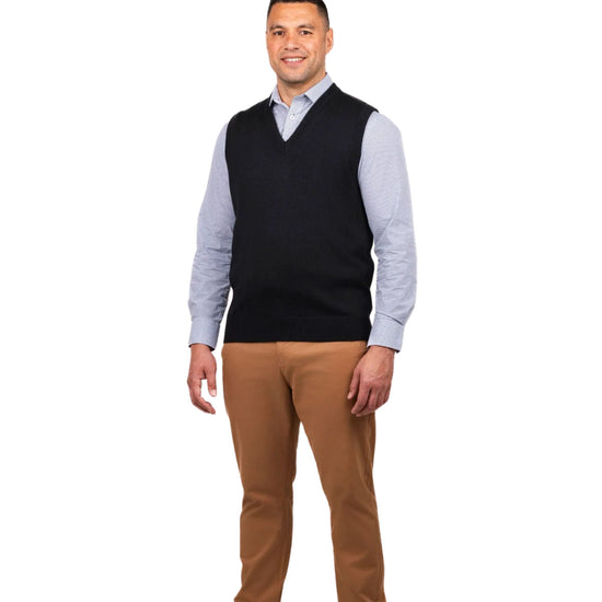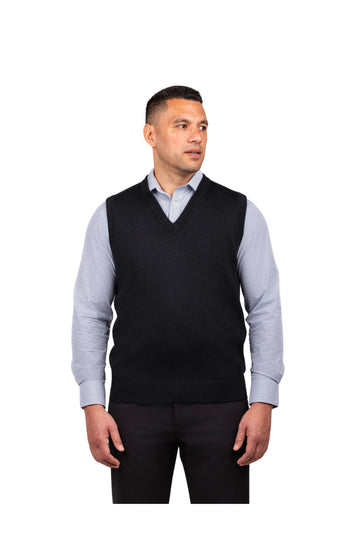 Our Merino Blend V Neck Vest, a unisex style that offers unparalleled comfort and flexibility. A heavy weight knit vest with rib detailing will keep you warm during the cooler days, designed to be worn over a shirt or blouse.