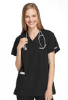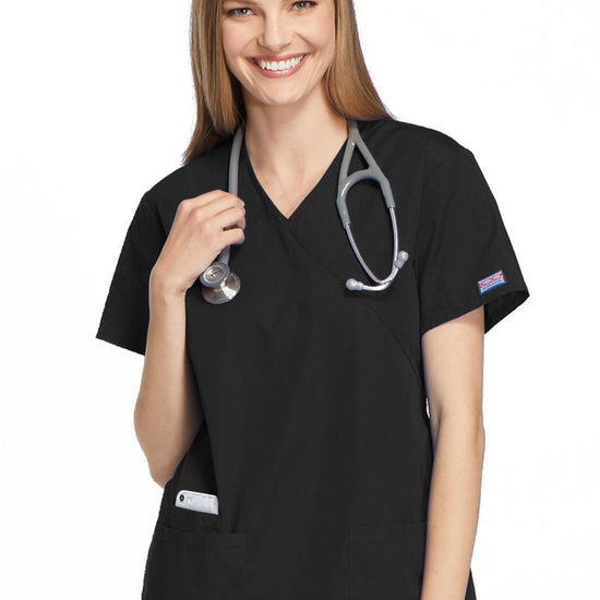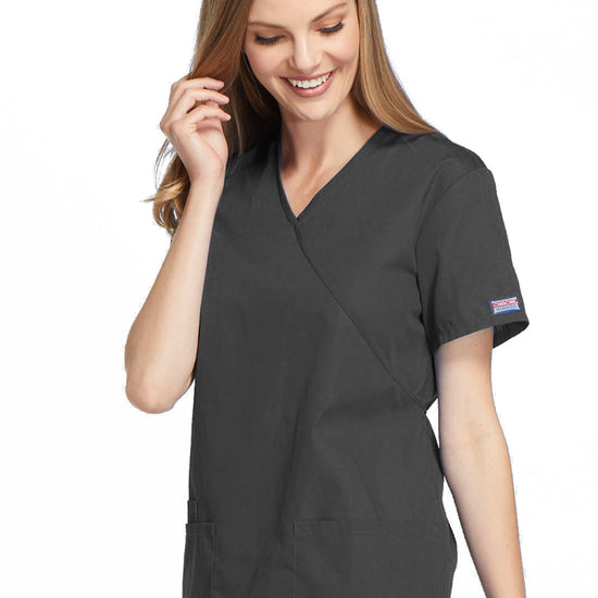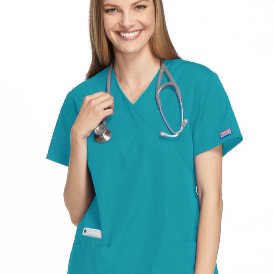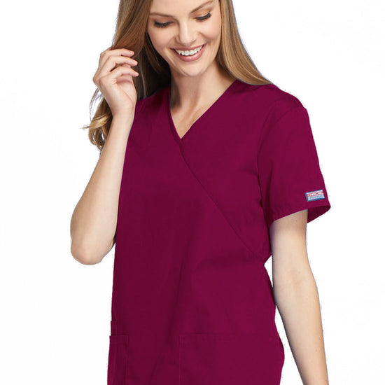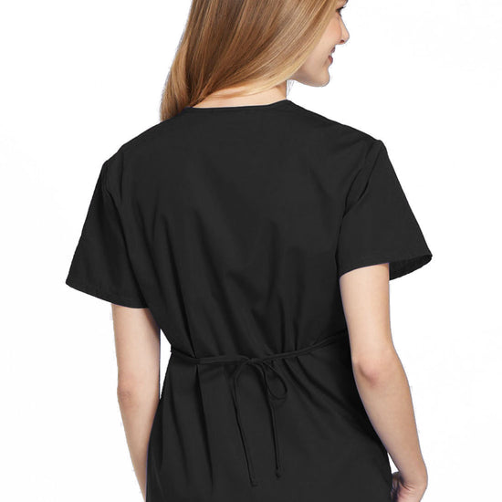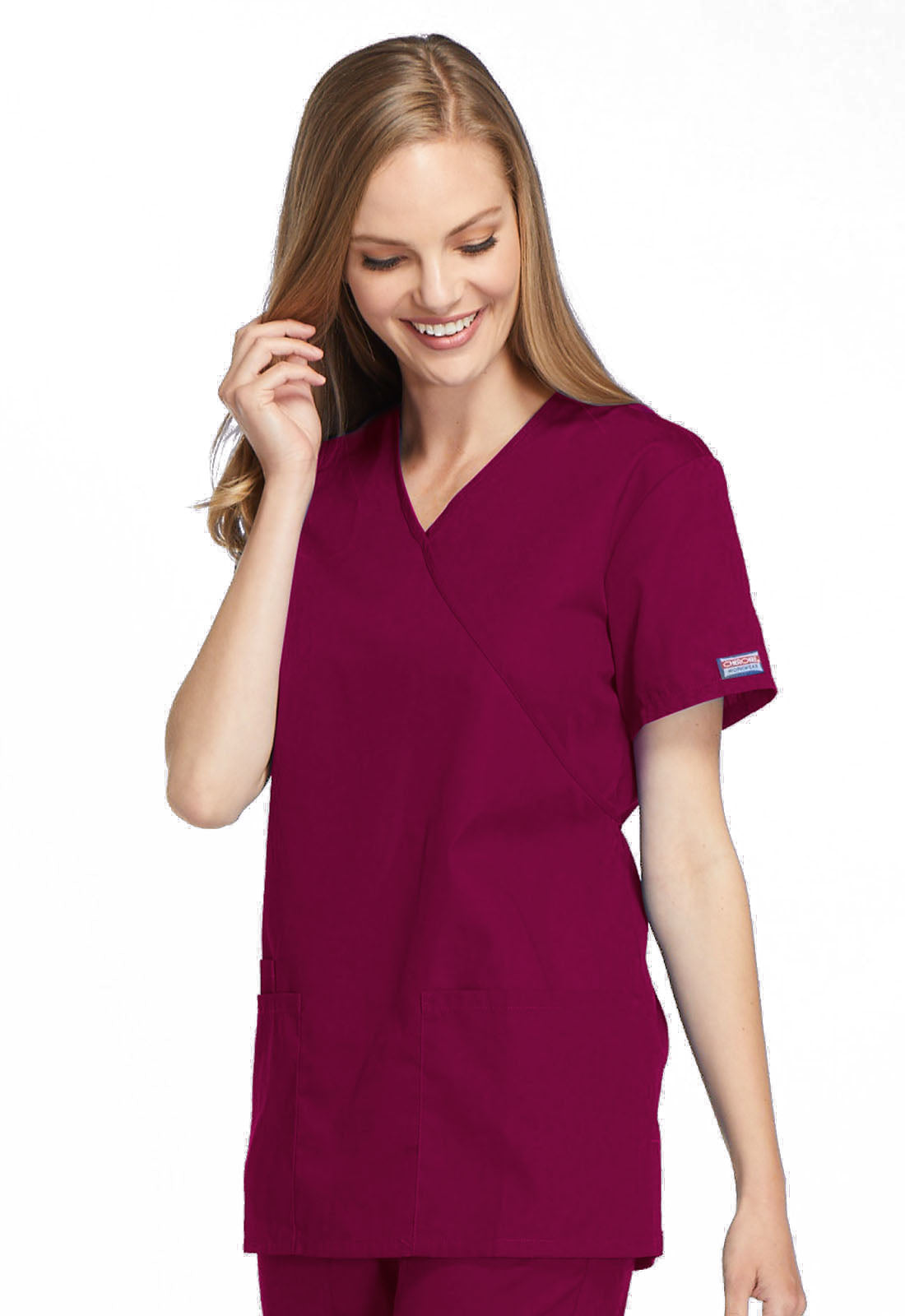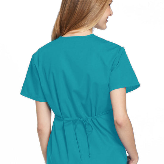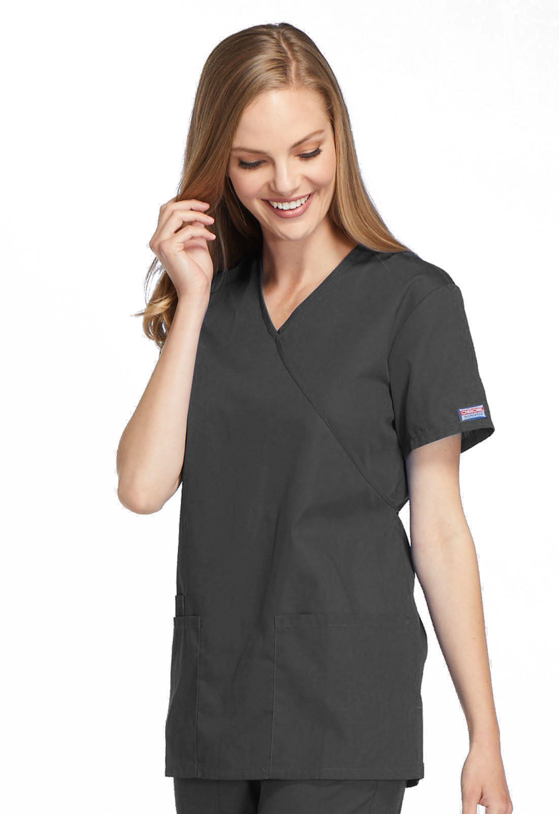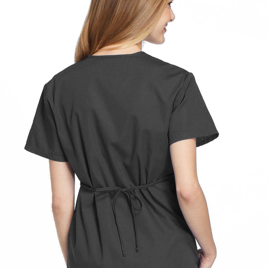 This Traditional Classic fit, mock wrap tunic features two patch pockets, one cell phone pocket, side vents and an adjustable tie back. Center back length: 72.39cm