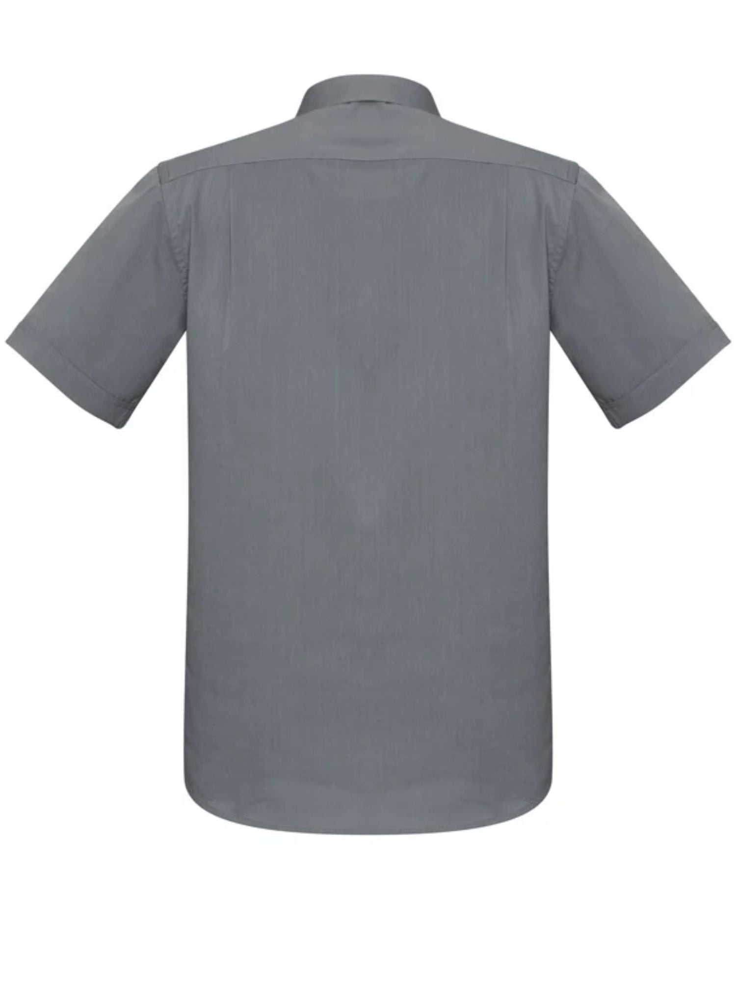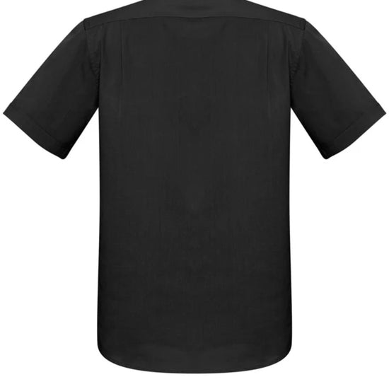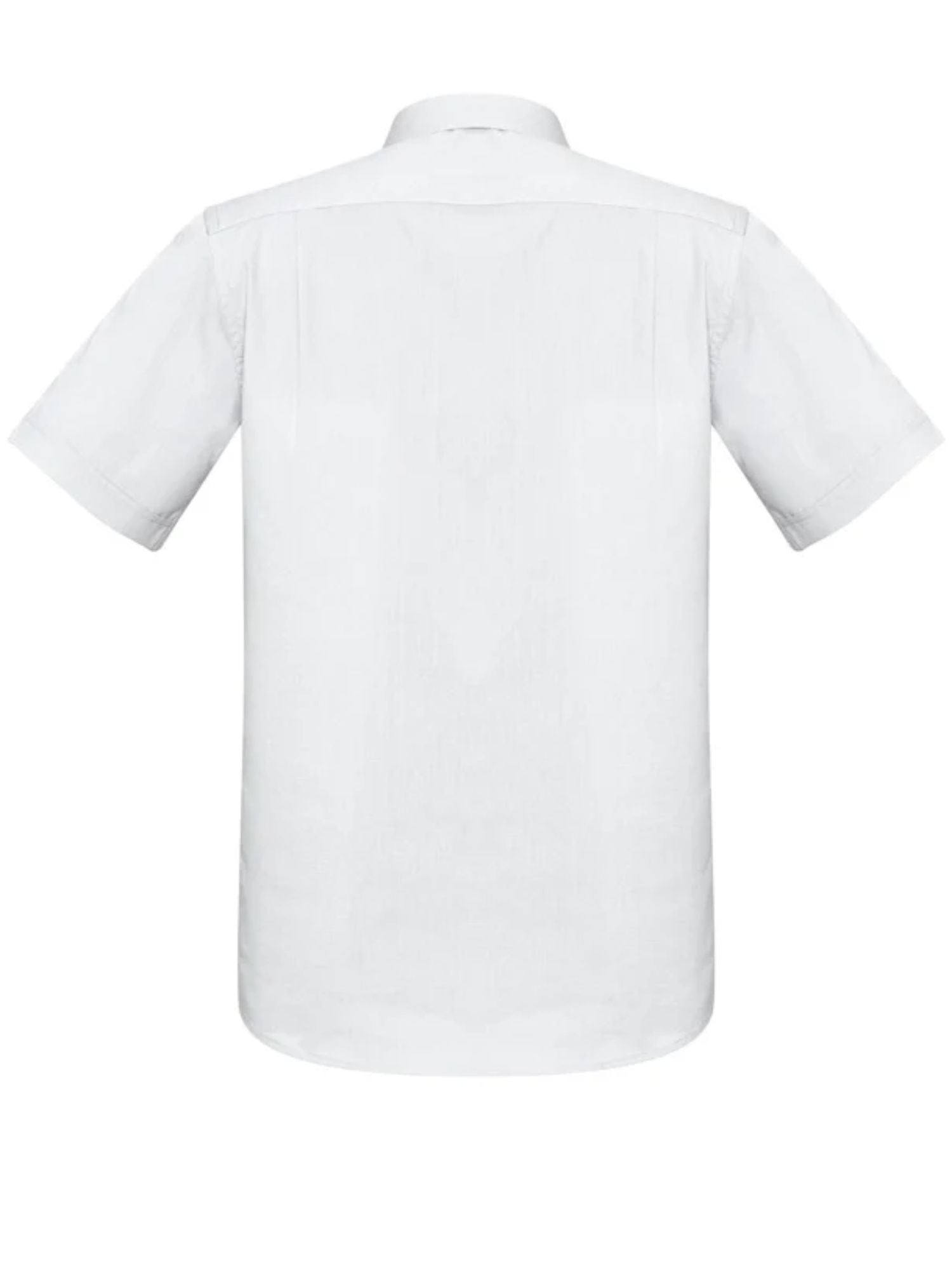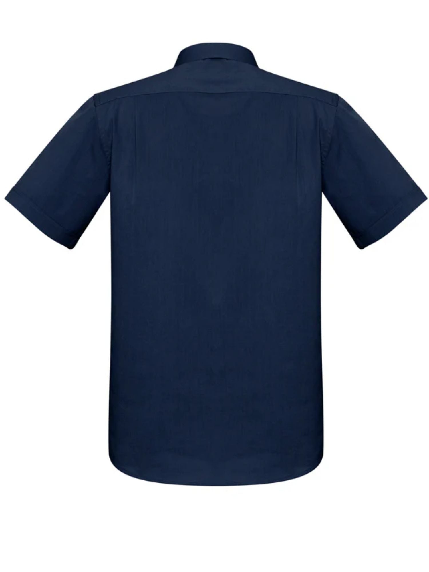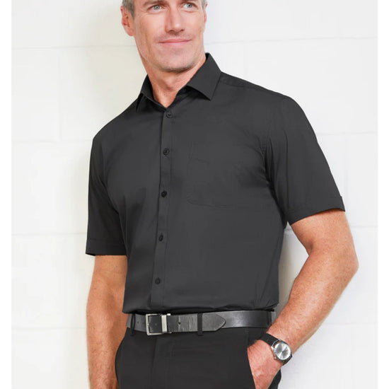 A short sleeve shirt made in cotton rich fabric with stretch. Featuring a chest pocket and twin back pleats. Curved hem can be worn in or out.