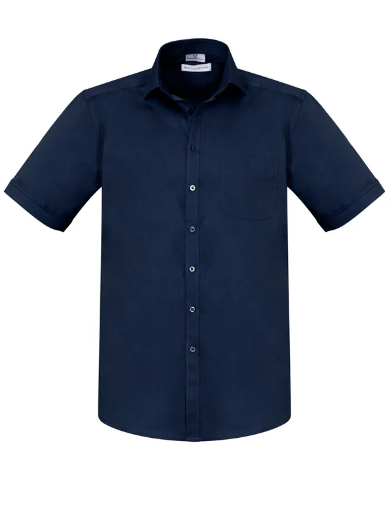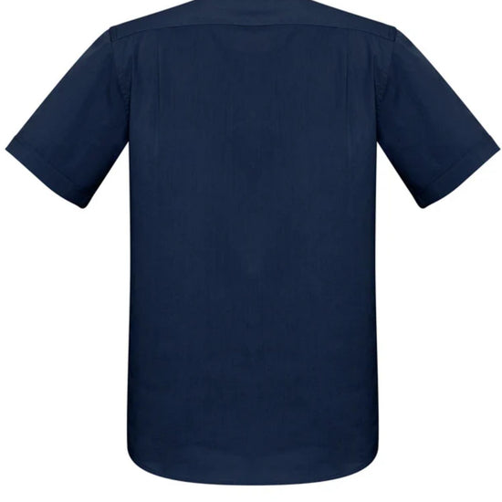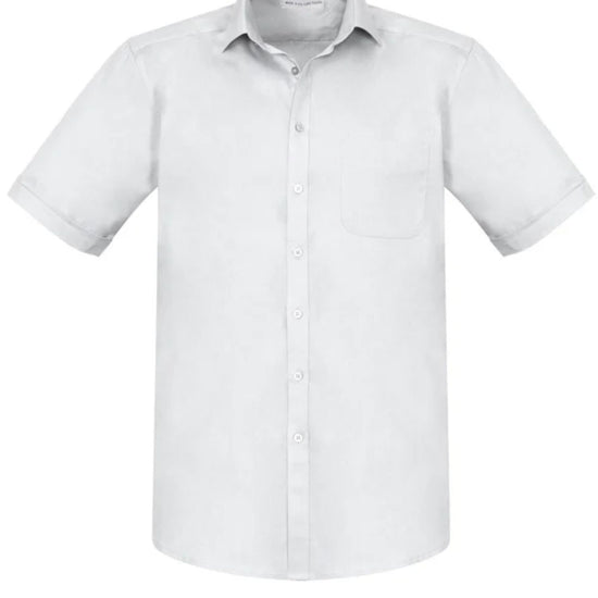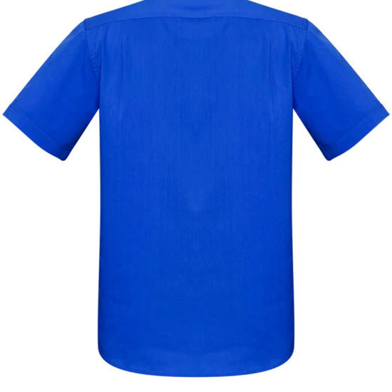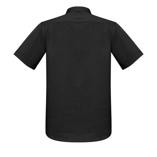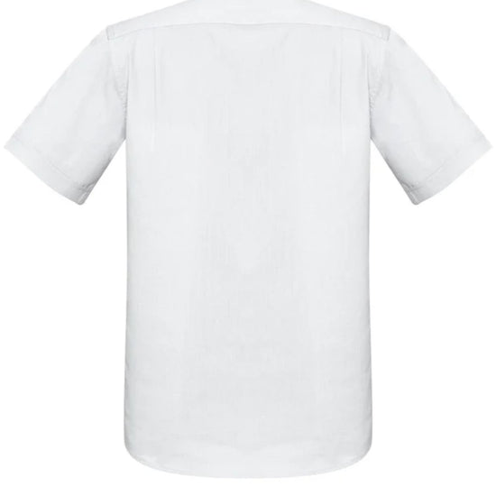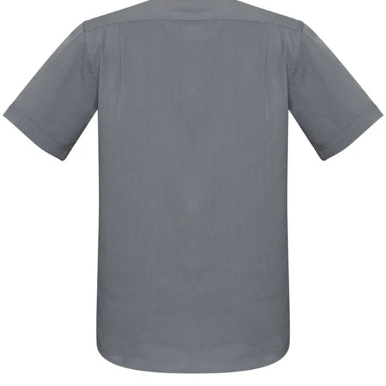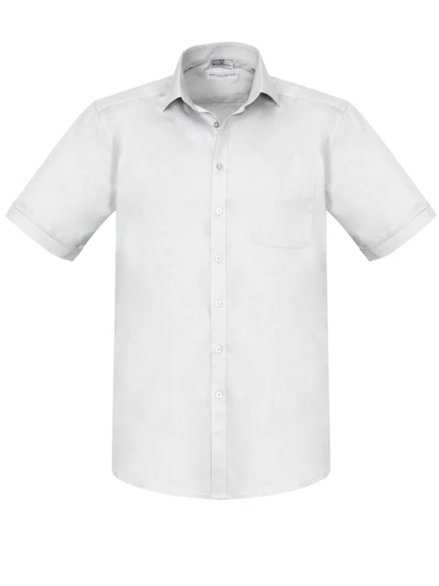 A short sleeve shirt made in cotton rich fabric with stretch. Featuring a chest pocket and twin back pleats. Curved hem can be worn in or out.