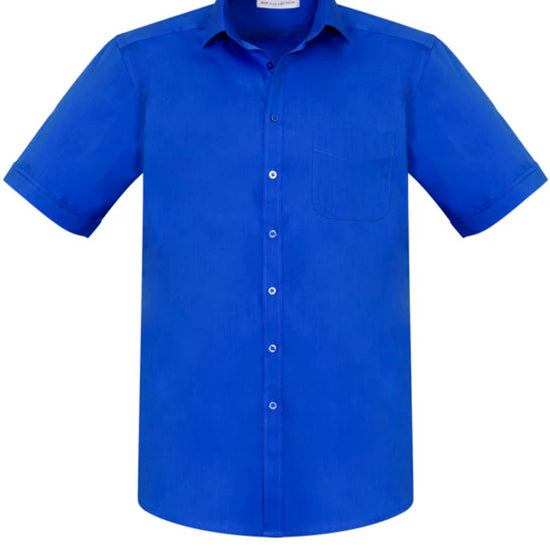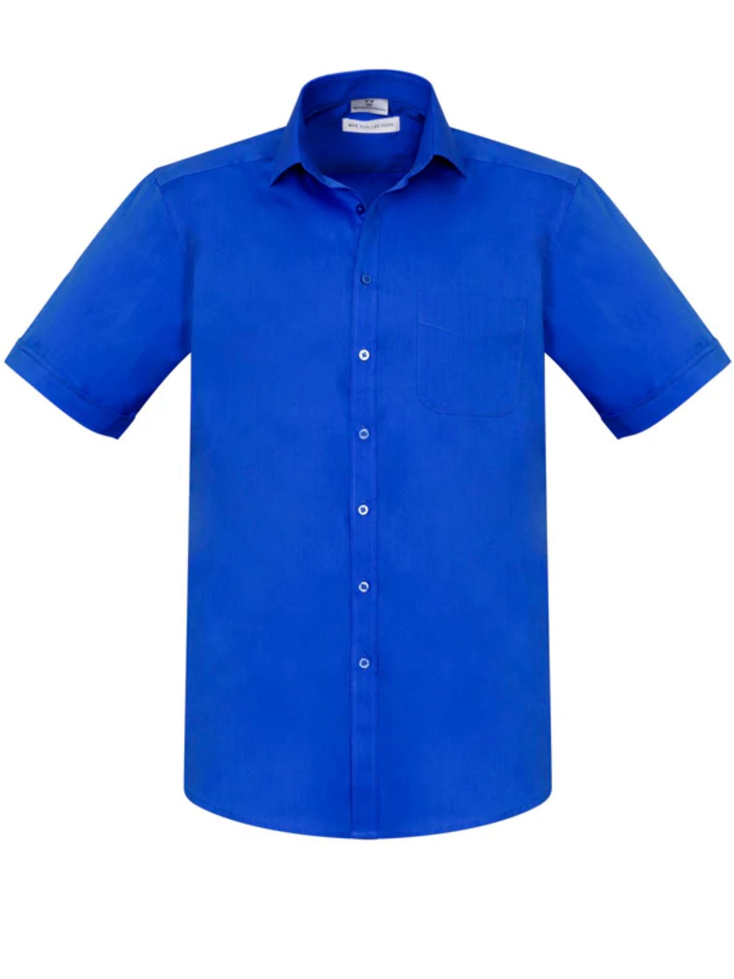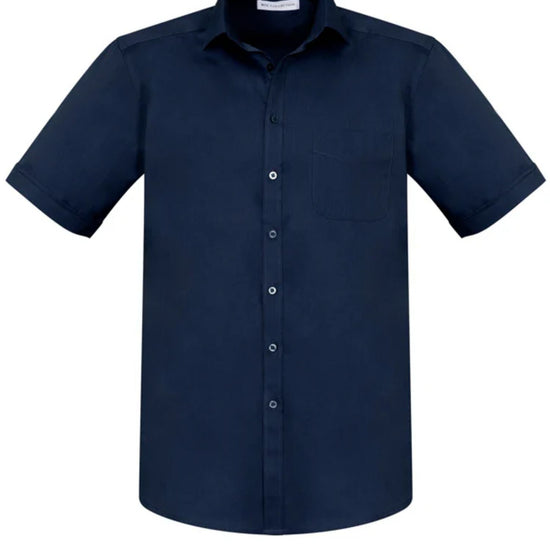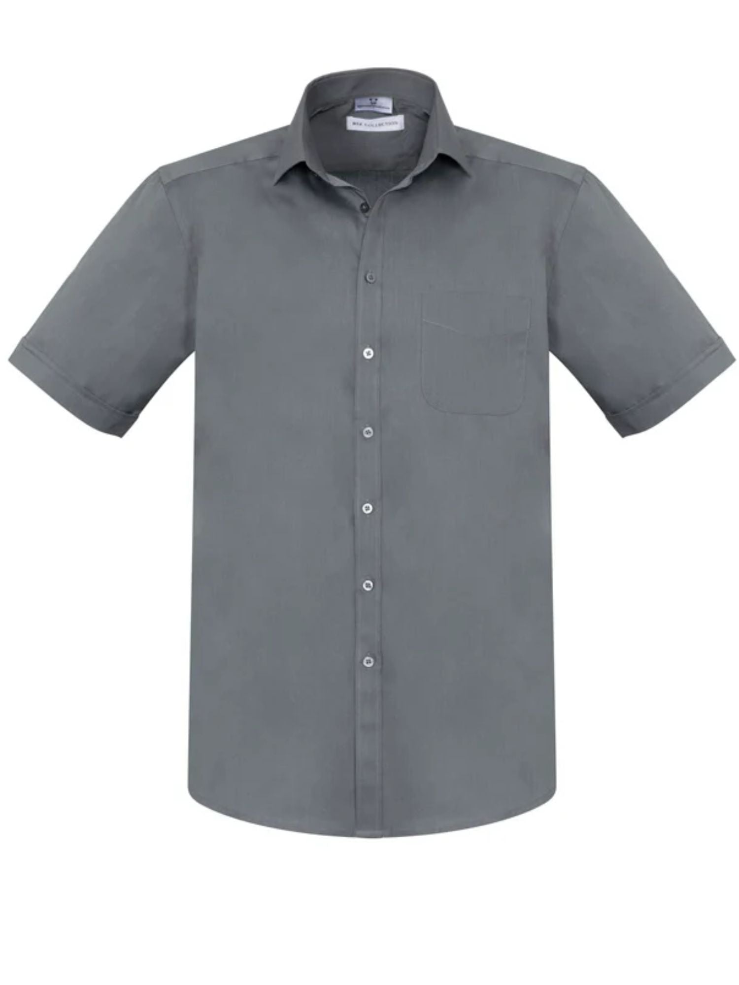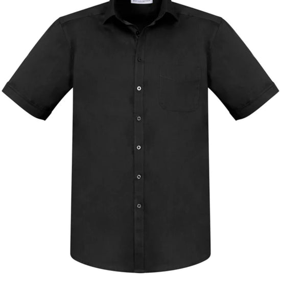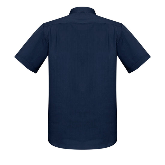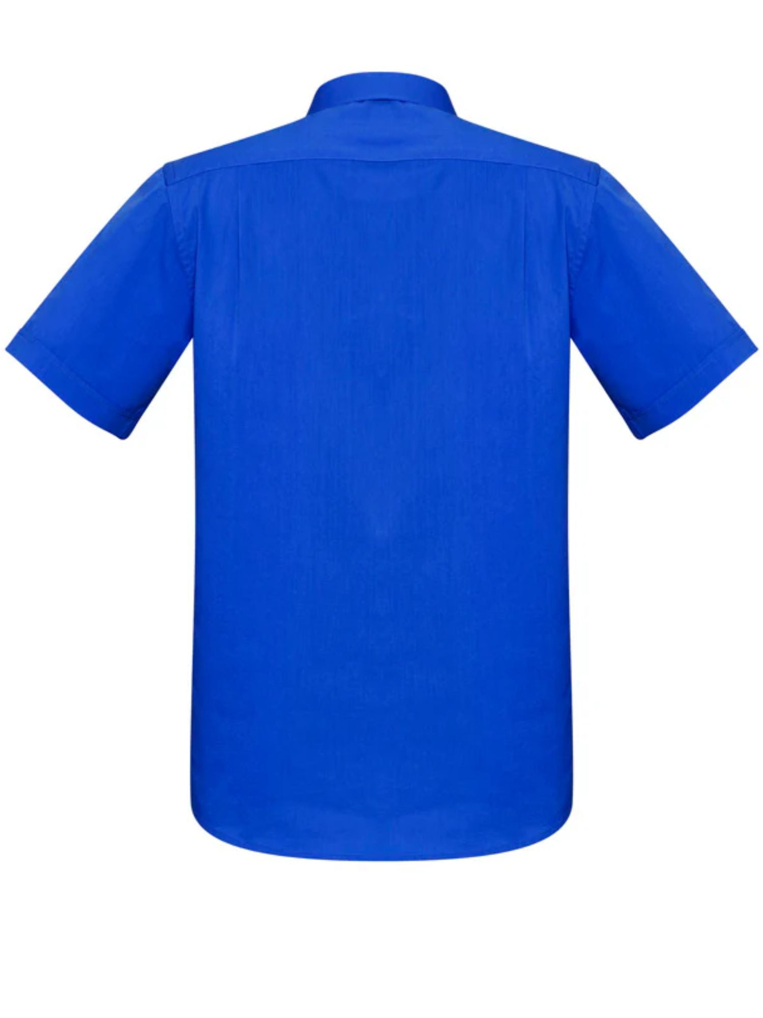 A short sleeve shirt made in cotton rich fabric with stretch. Featuring a chest pocket and twin back pleats. Curved hem can be worn in or out.