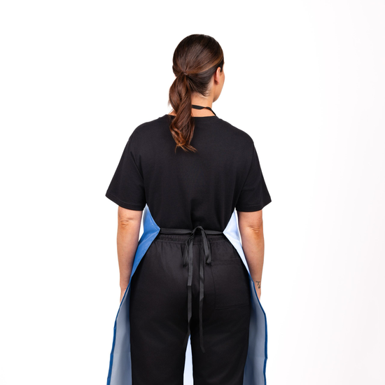 Our Nylon Wipe Down Bib Apron is a standard bib style apron without a pocket that is light and comfortable while providing great protection. Knee length design with neck loop and back waist ties for a secure fit.