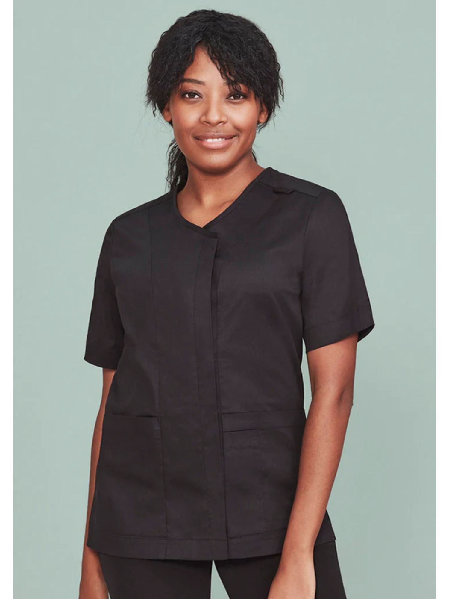 Cotton-rich fabric with added antibacterial protection and stretch. The full zip front removes the need for overhead removal. Match tops with Riley lowers, or wear with any functional lowers. Suitable for all health and beauty professionals.
