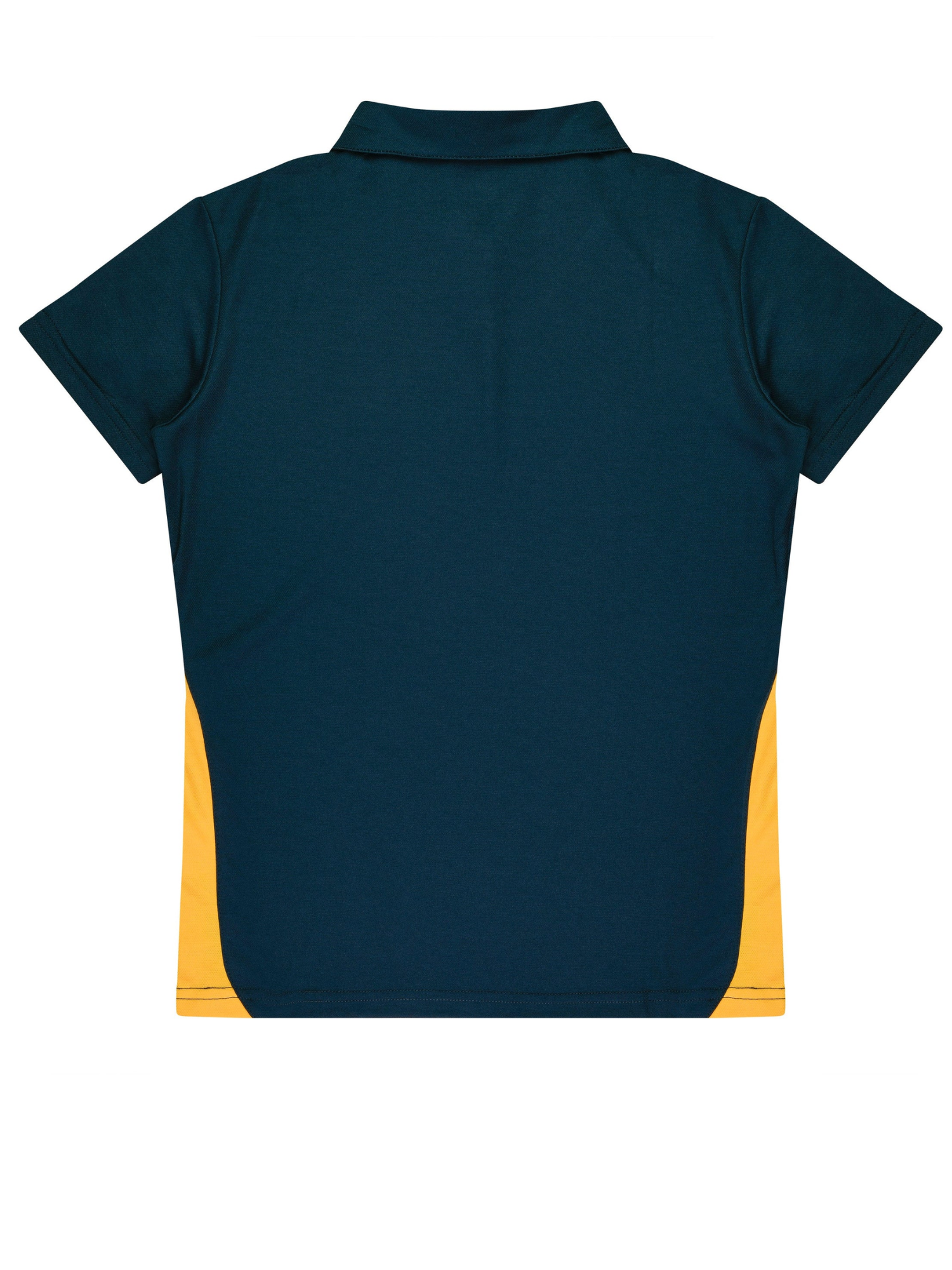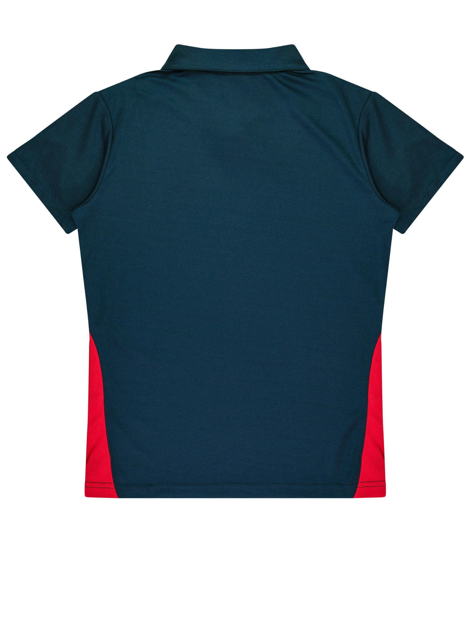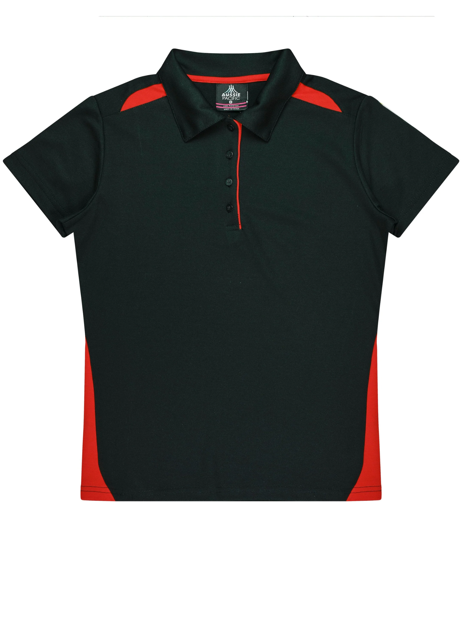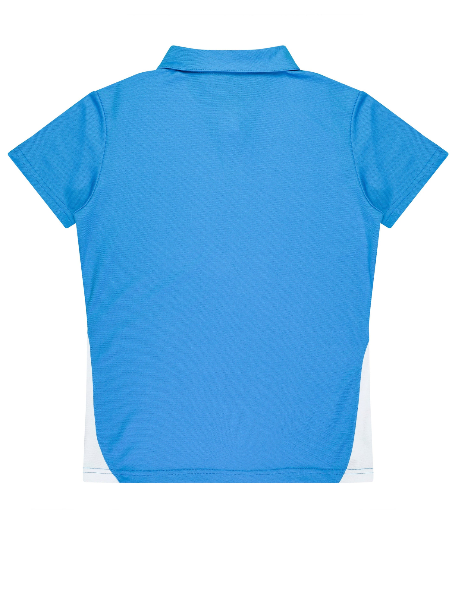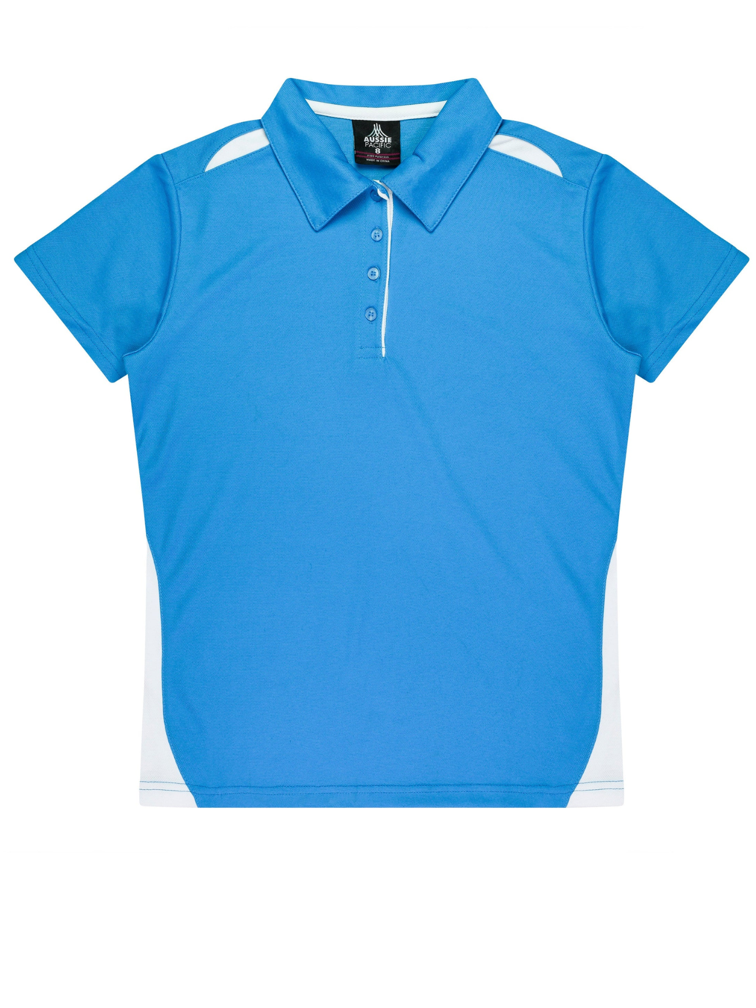 Cottonback pique knit Easy care fabric Self fabric collar Contrast panels & piping 3 button placket