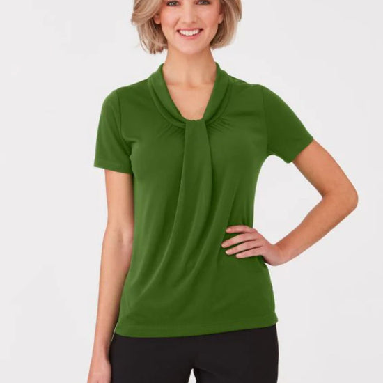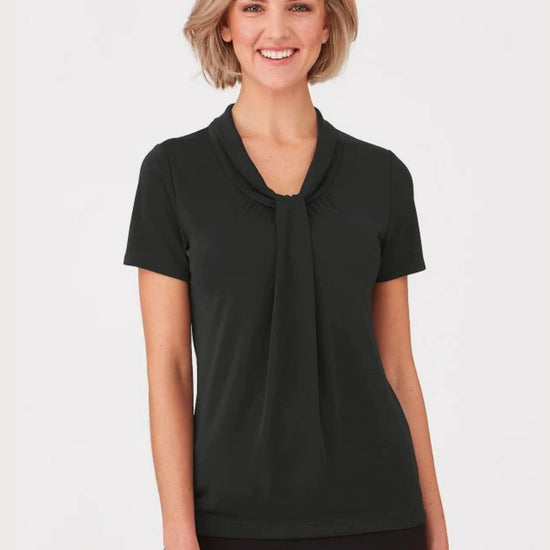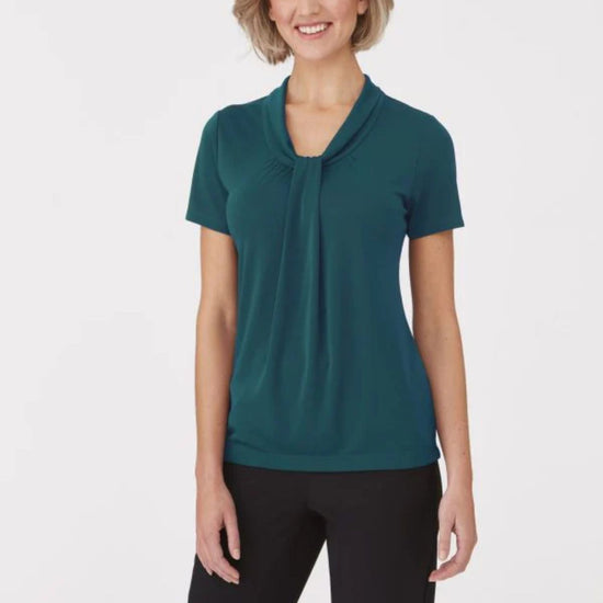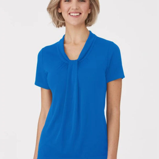 A softly draped neckline with gathered detail creates an elegant, professional look - making the Pippa Knit top a popular choice. The stretch Matte Jersey knit is easy care, cool to wear, and flatters all body shapes and sizes.