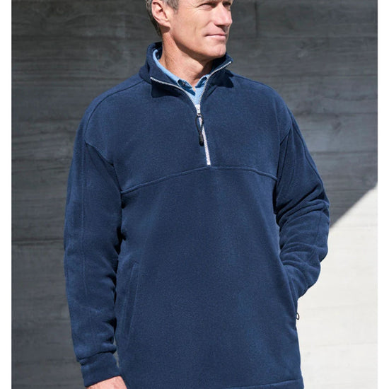 1/2 Zip Winter Fleece Top with concealed zipper front welt pockets, generous easy fit sizing and an adjustable drawstring at the hem. Made from 100% Polyester Low Pill Fleece, 360 GSM.