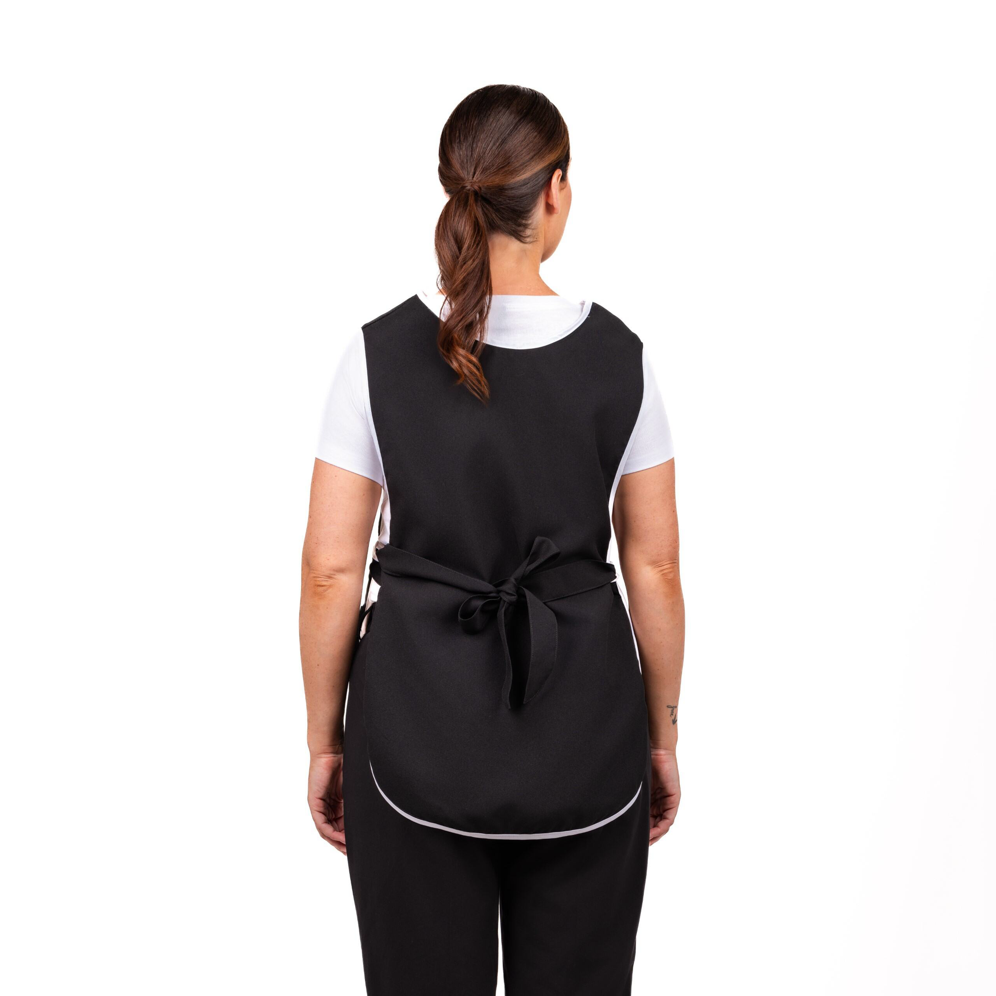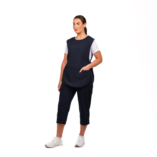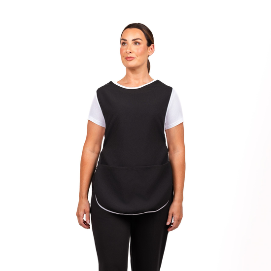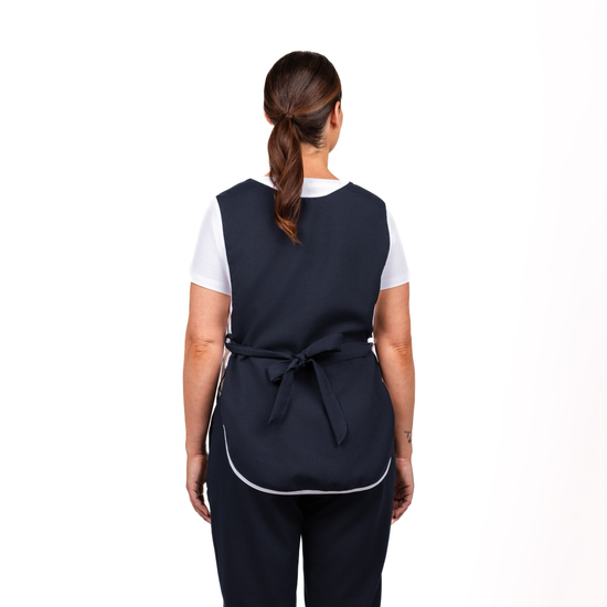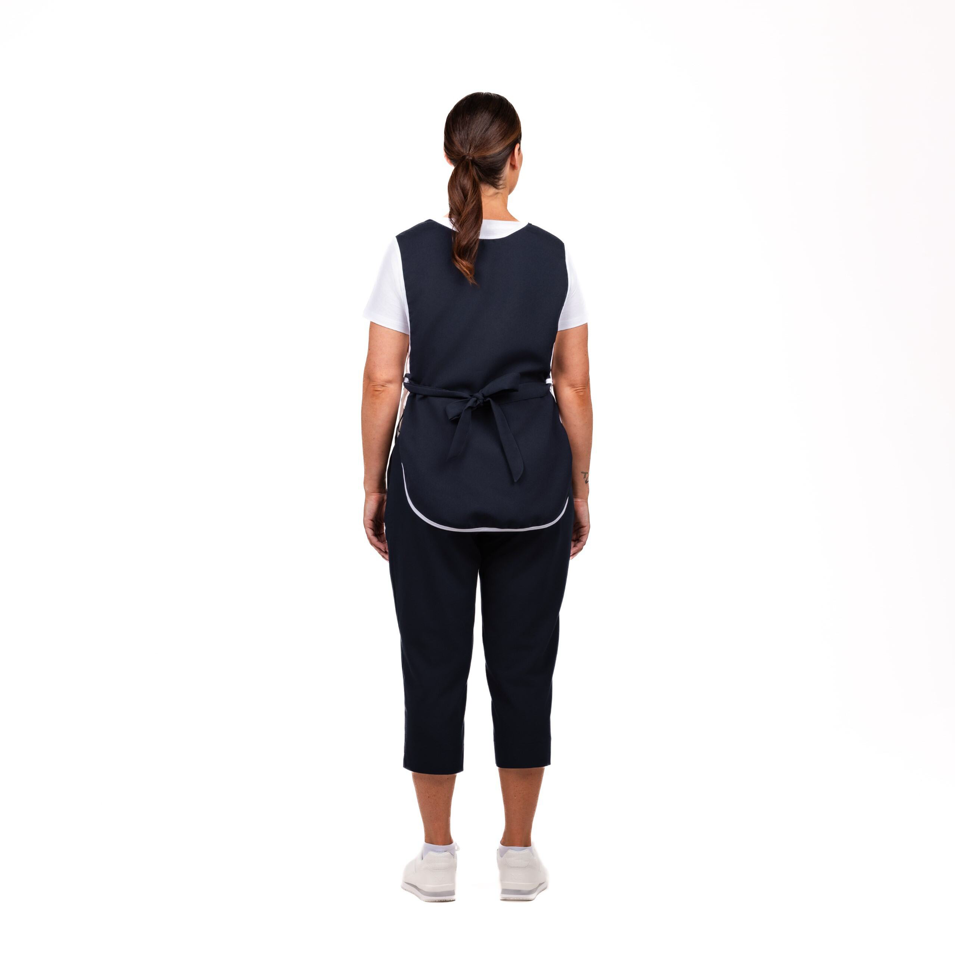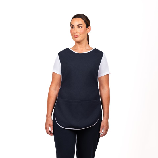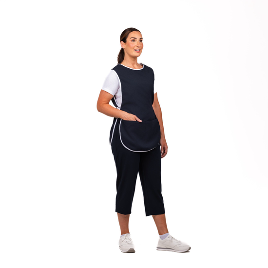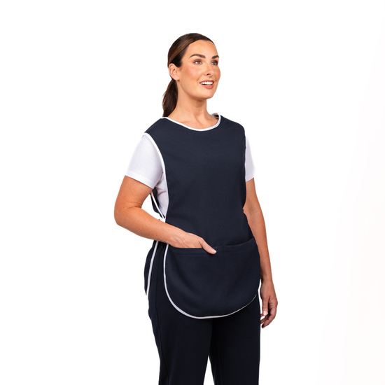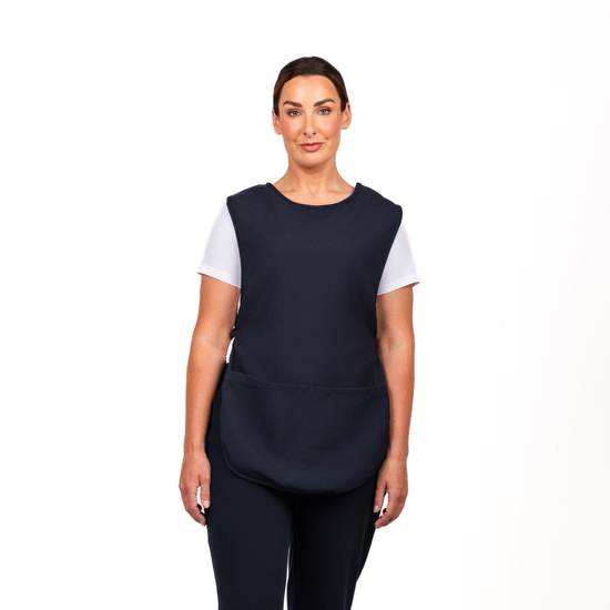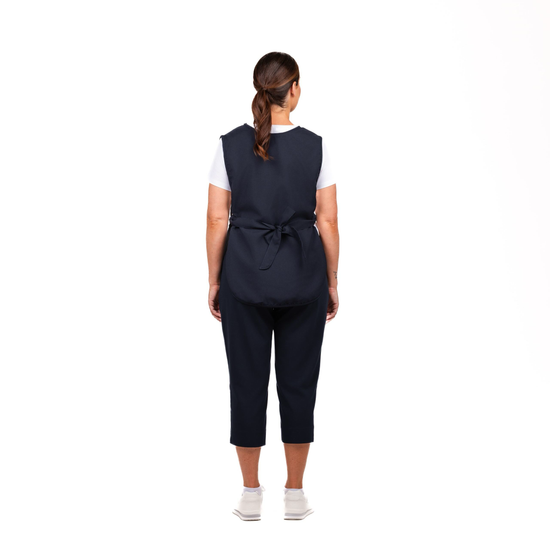 The popover apron can be tied at the front or back and features two sizeable front pockets for added convivence. It is a stylish apron perfect for cleaning, its flexible easy care and durable and lightweight. This style is one size fits most.