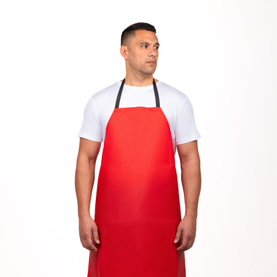 Our PVC Wipe Down Apron is below the knee length made in Nylon PVC. Front protection the PVC makes this apron ideal for kitchenhand purposes.