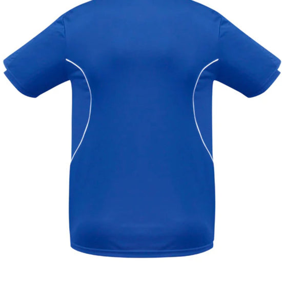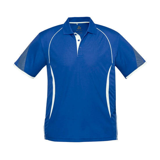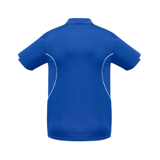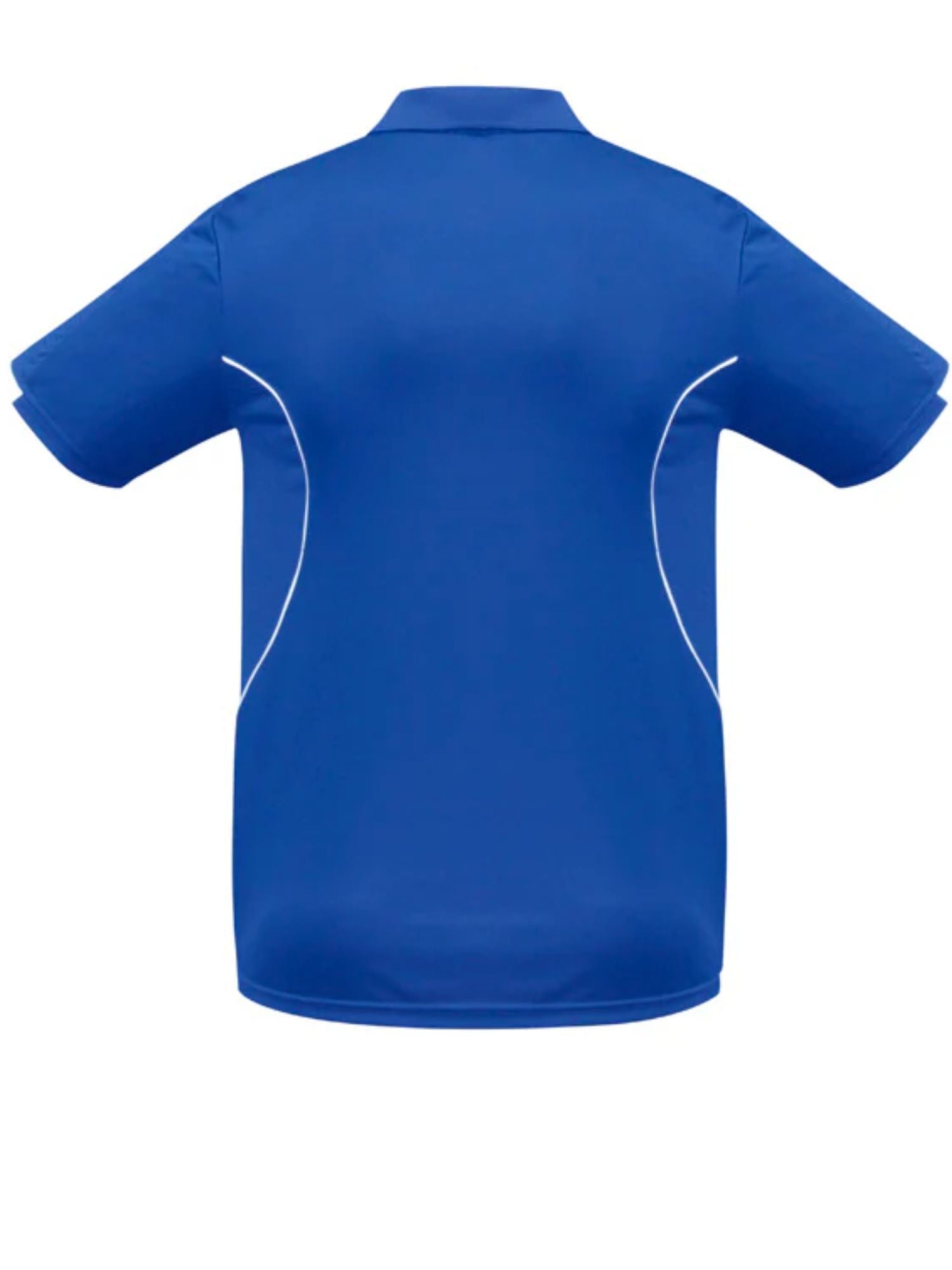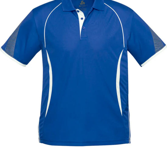 Men's Cool Sports Polo with contrast panels and piping. Features include 100% polyester sports interlock fabric with 155GSM and an excellent UPF rating, grid mesh underarm panels for breathability, a unique sleeve print feature, and a knitted collar with a contrast placket.