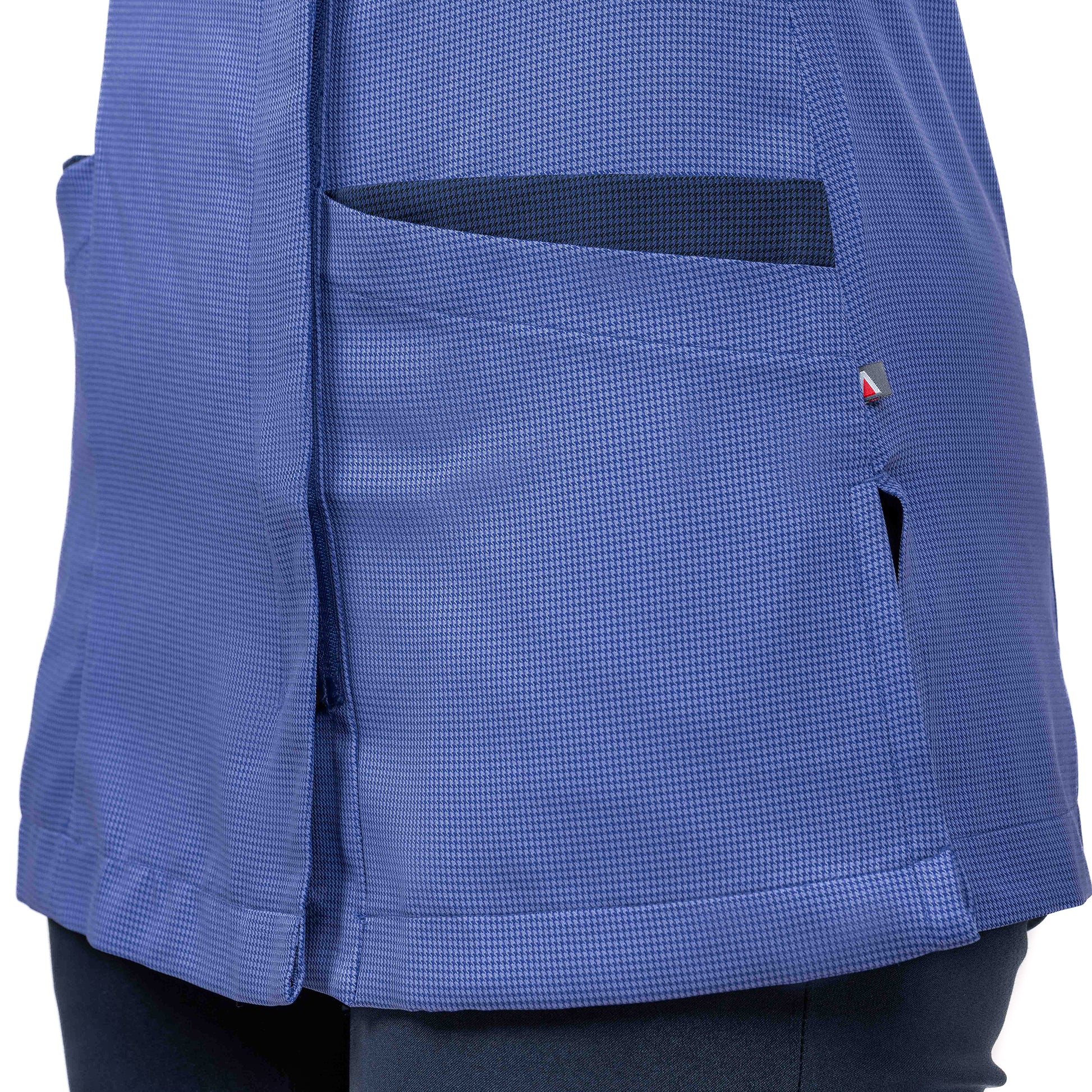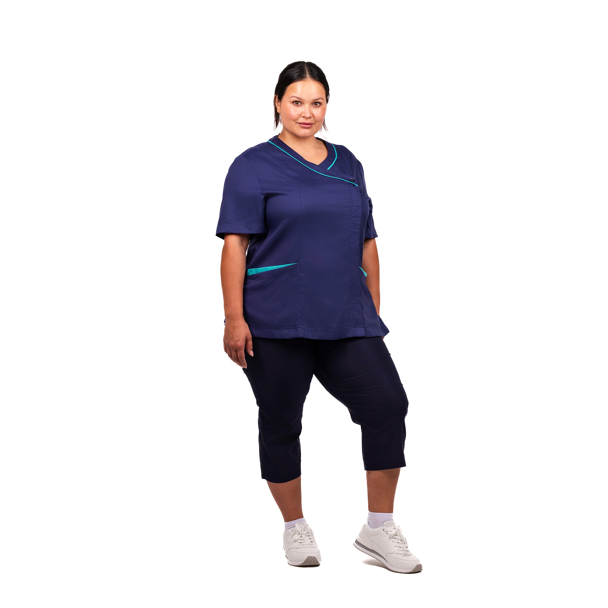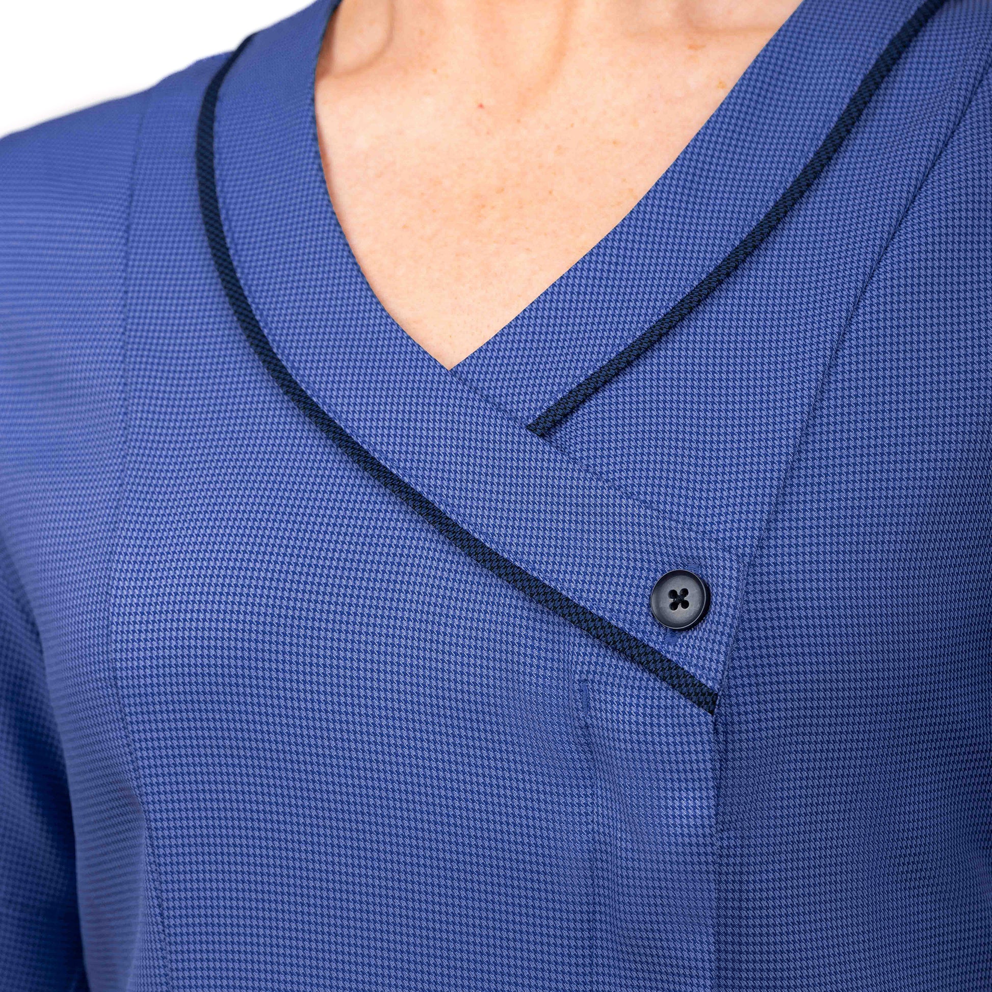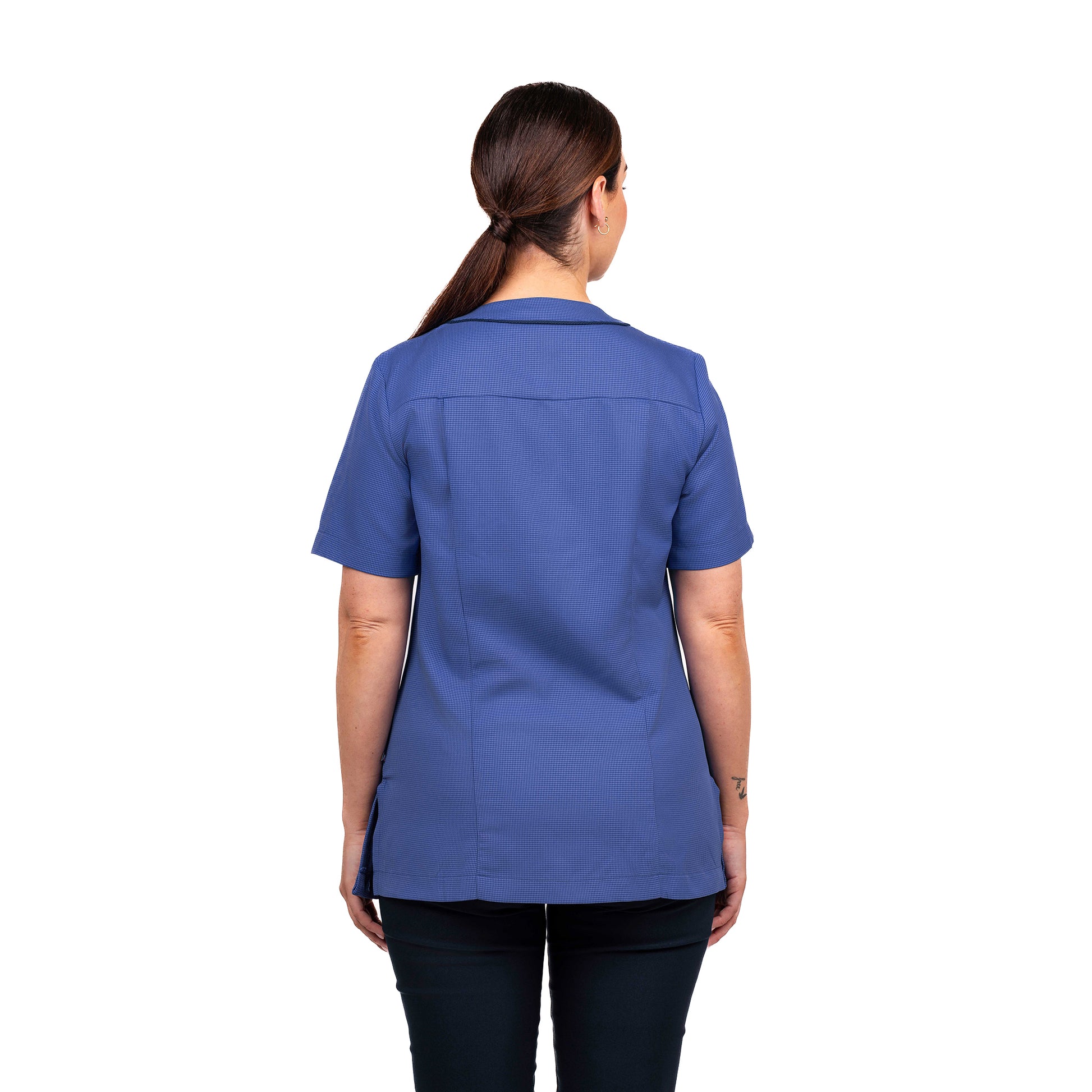 Our Rebecca Tunic is a crossover zip front style and button closer on both sides to avoid gaping. Providing plenty of storage with two deep hip pockets that have inner contrast pockets. Princess seam panelling and back shoulder pleats makes for a great fit.