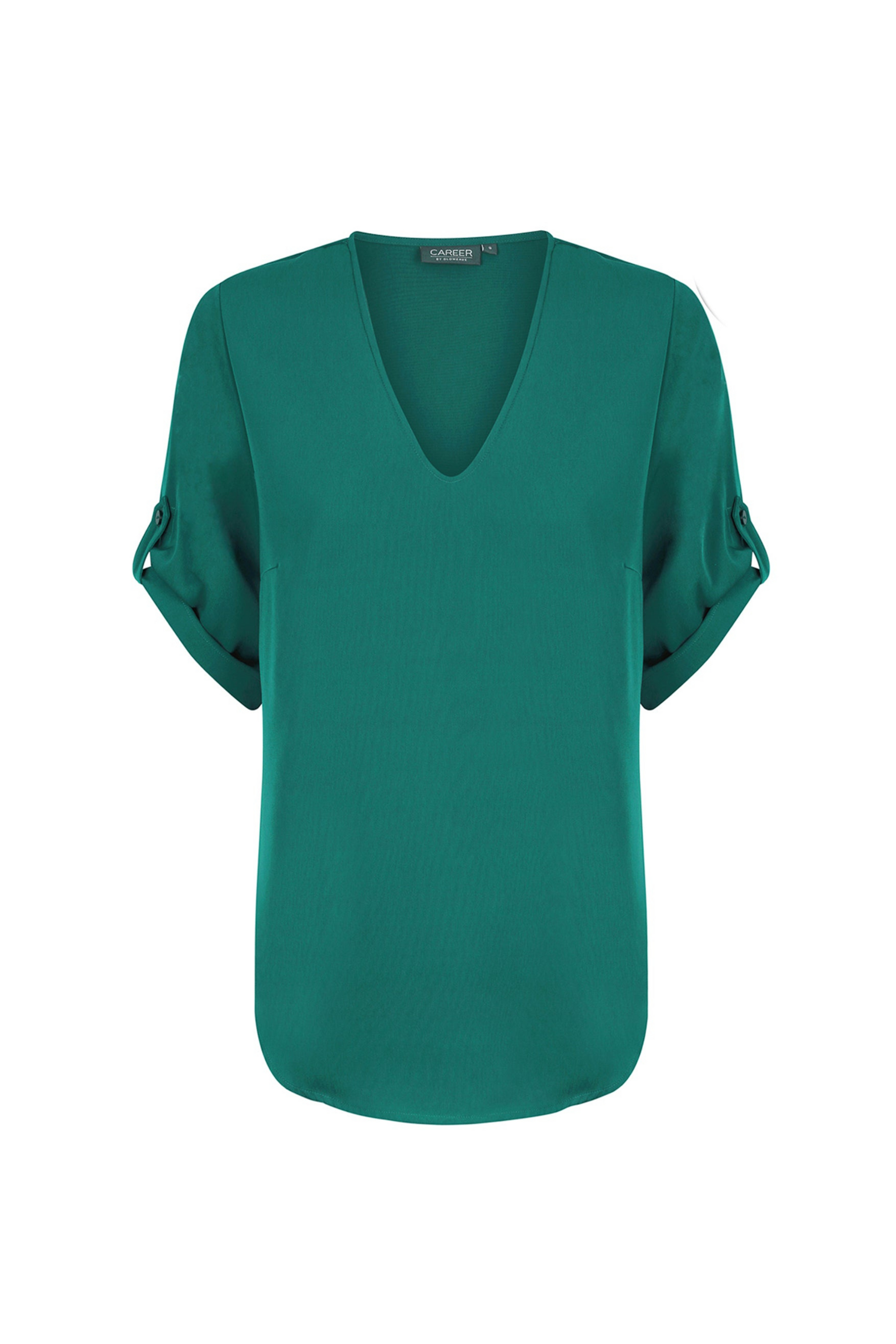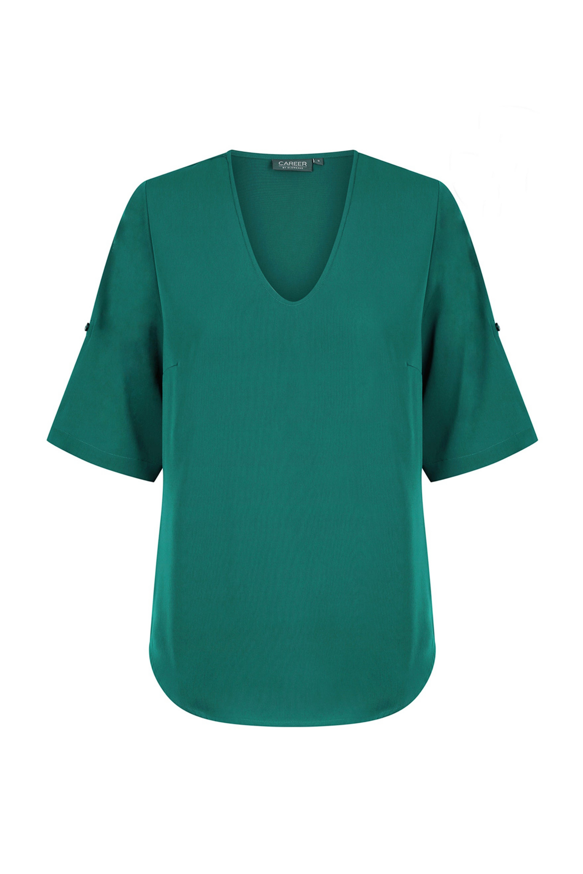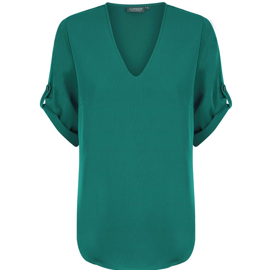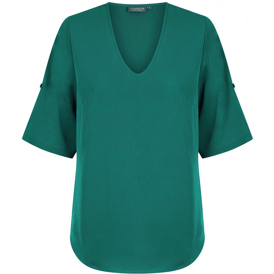 The Reese short sleeve V-neck top is fabricated in a luxe twill fabric that is durable, lightweight and easy to look after. It features elbow length sleeve with a tab and button to roll up to add an extra design detail. This could be a staple top in your weekly work wardrobe, is comfortable and works with you and making you and your team look polished and professional.