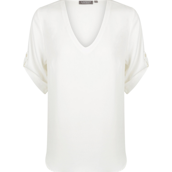 The Reese short sleeve V-neck top is fabricated in a luxe twill fabric that is durable, lightweight and easy to look after. It features elbow length sleeve with a tab and button to roll up to add an extra design detail. This could be a staple top in your weekly work wardrobe, is comfortable and works with you and making you and your team look polished and professional.