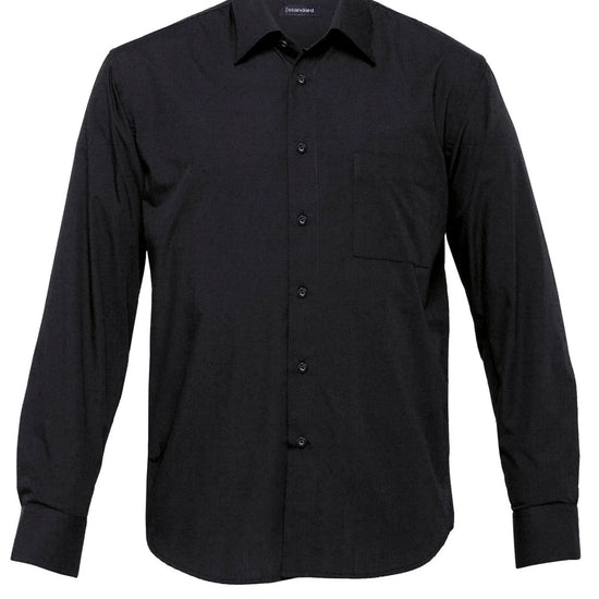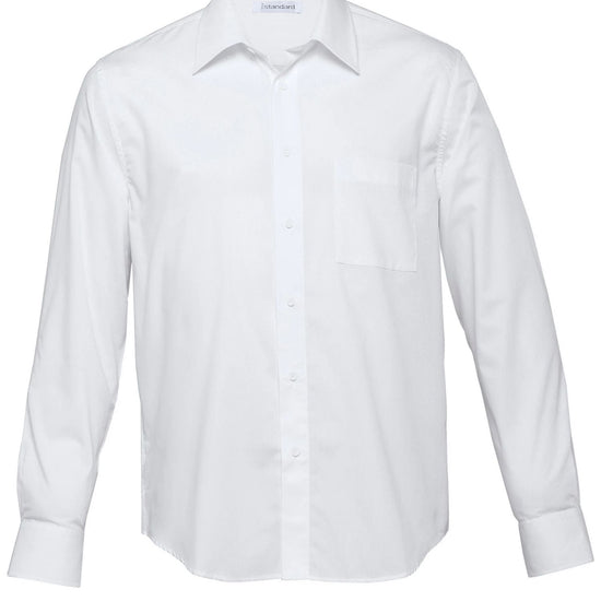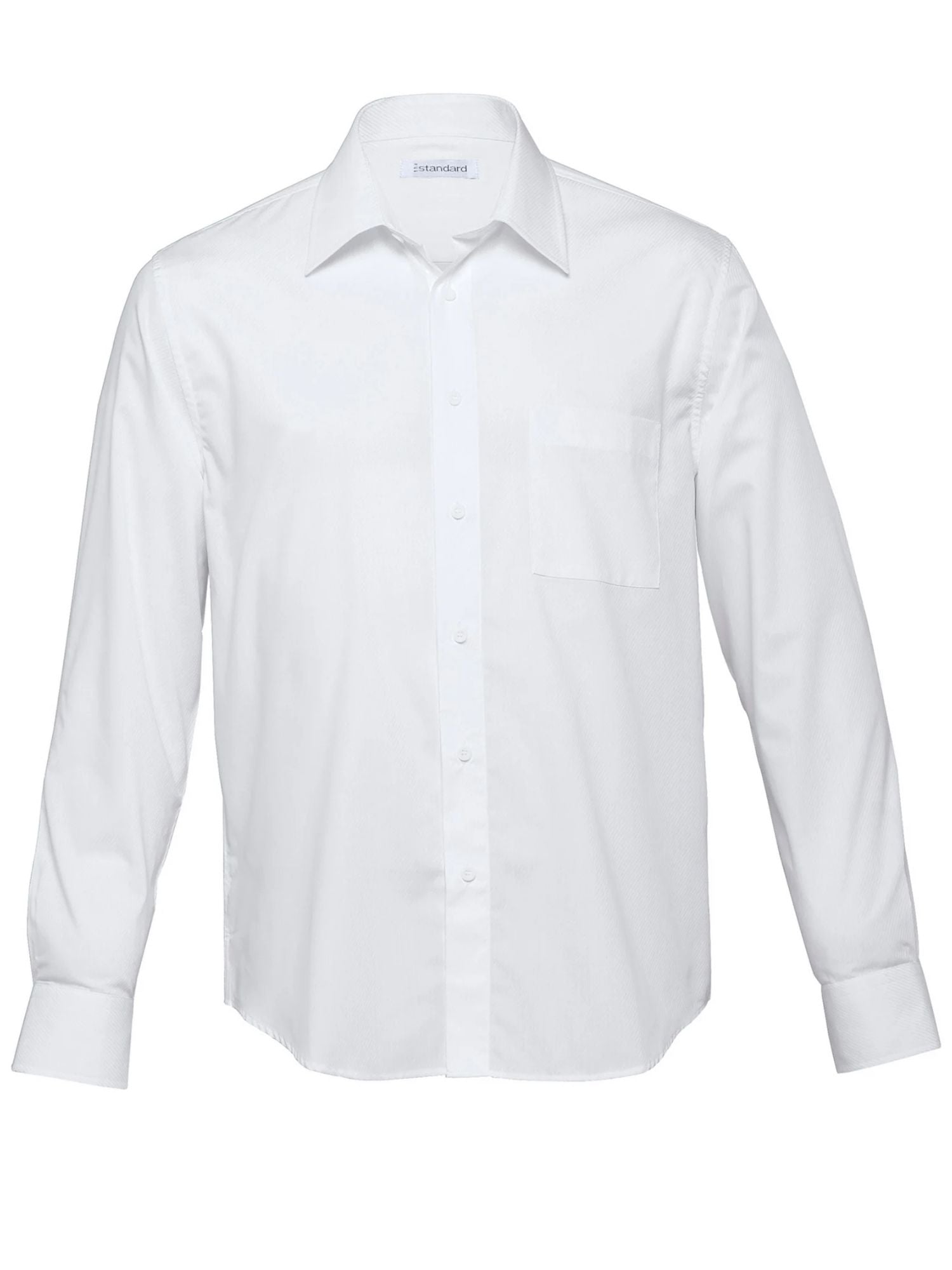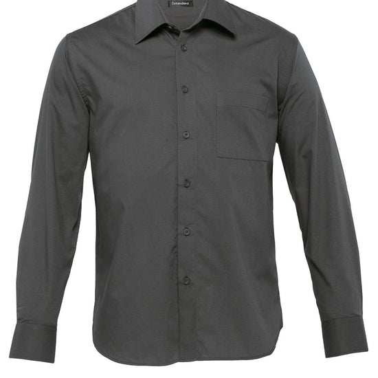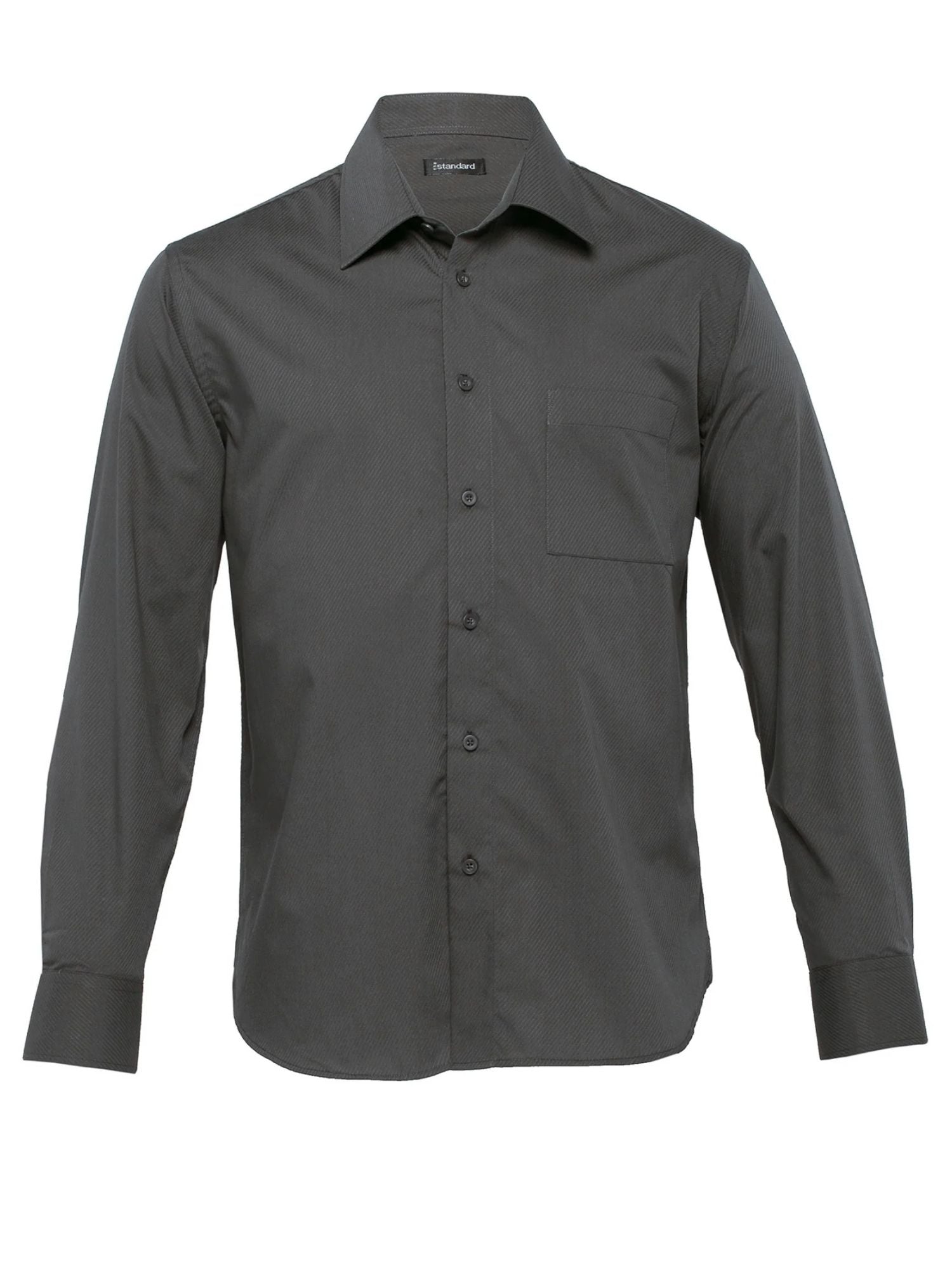 65% Polyester 35% Cotton bias stripe twill yarn dyed. Tapered fit long-sleeve shirt with casual fashion collar and single breast pocket.