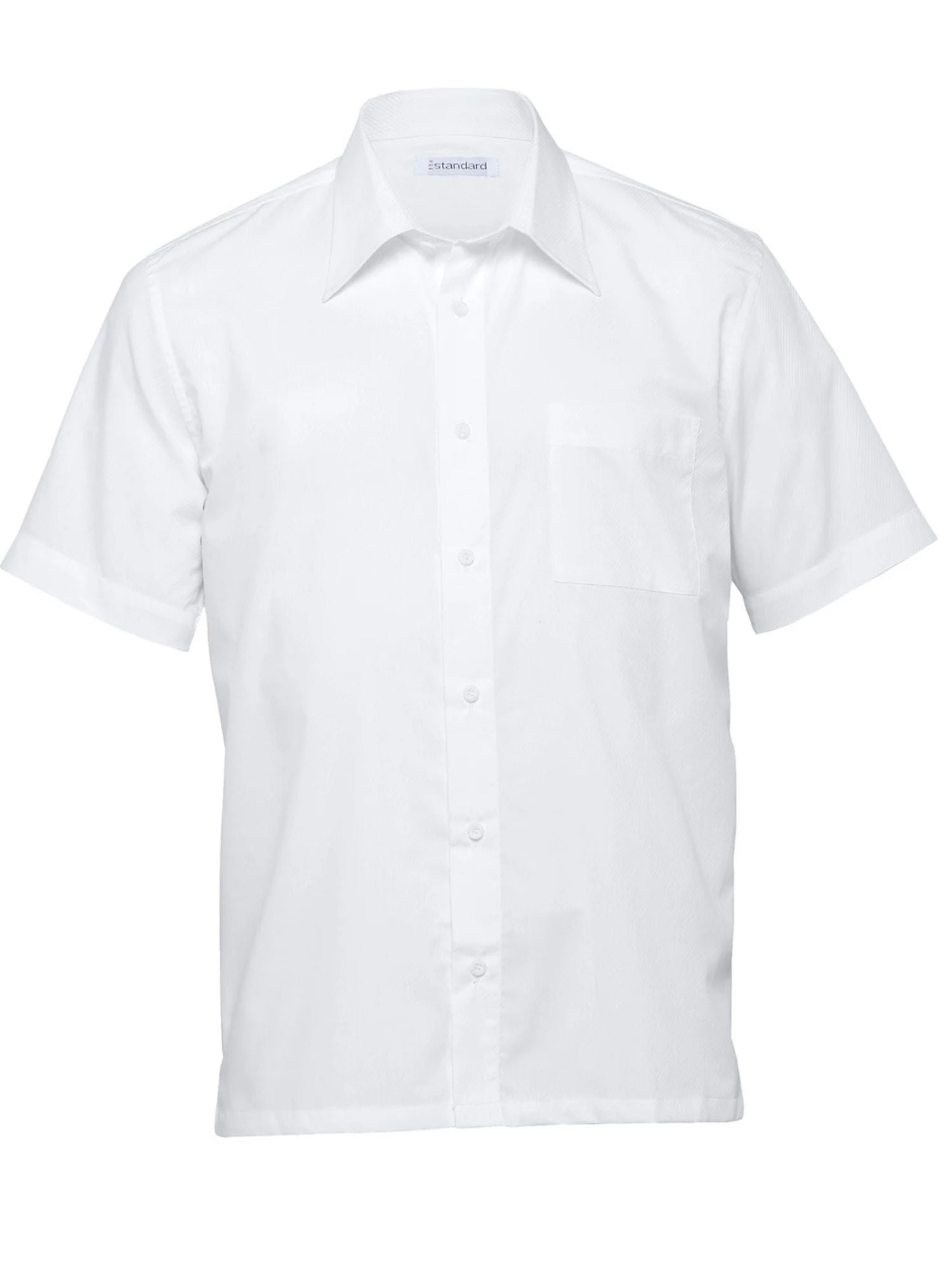 65% Polyester/35% Polyester bias stripe twill dyed/tapered fit shirt with casual fashion collar/single breast pocket/short sleeves and side splits on straight hem.