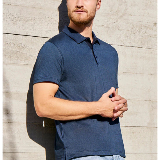 - Neat, flat knitted collar and inside contrast on the placket keep the look clean, crisp and professional.