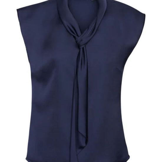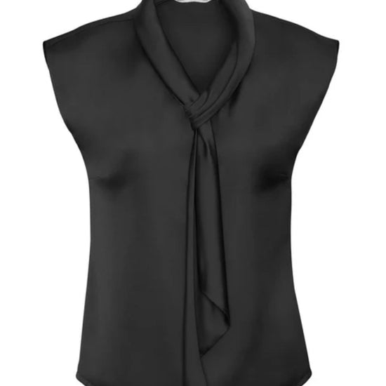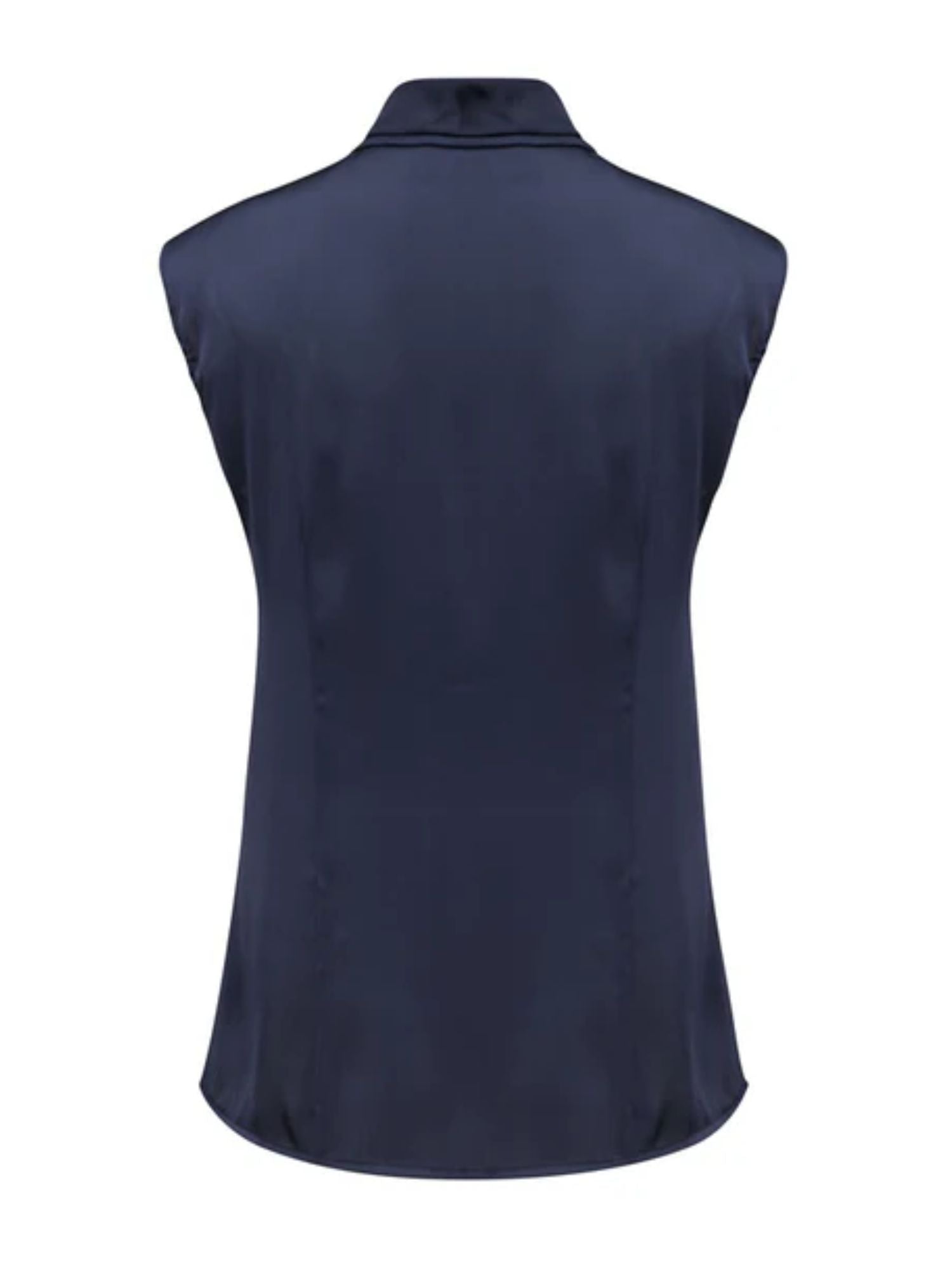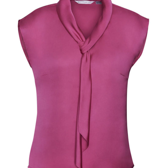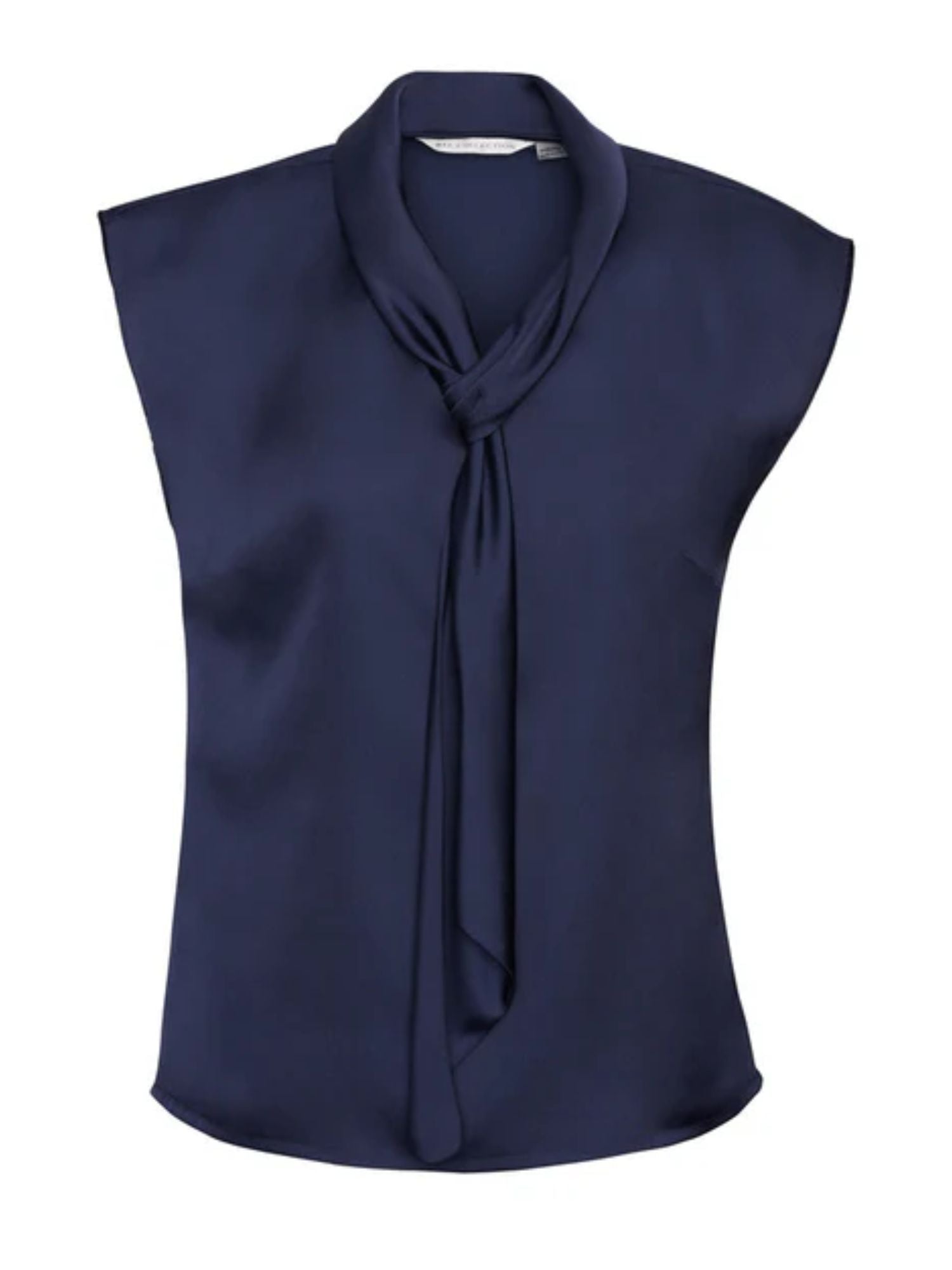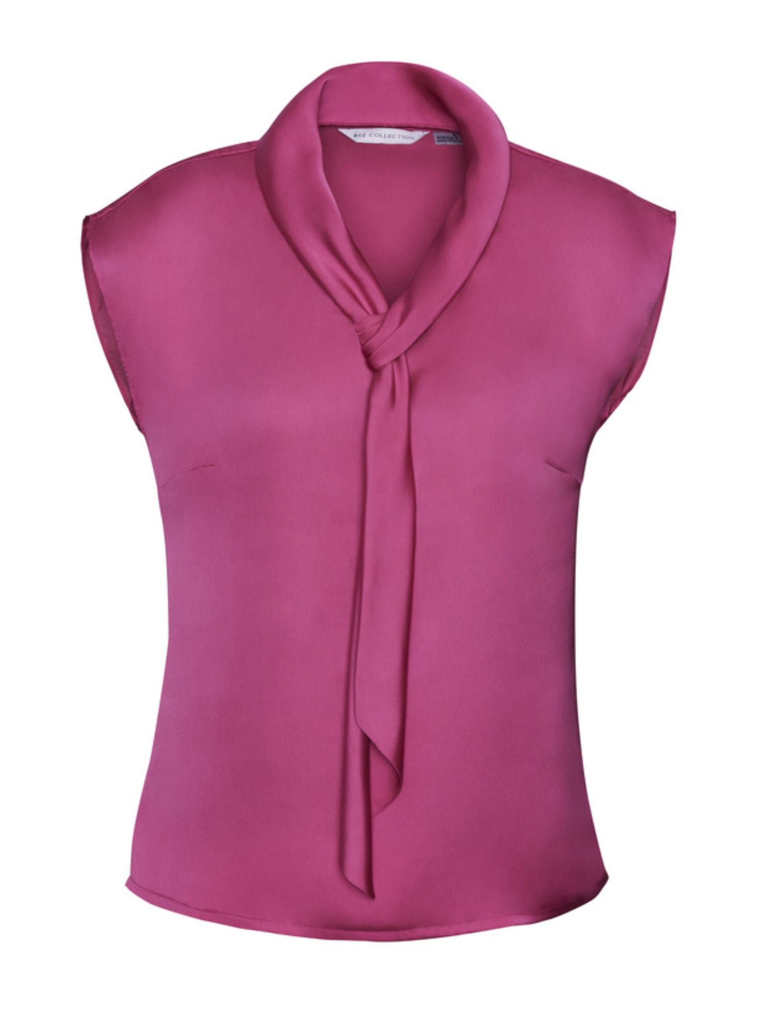 Ladies satin tie neck top is easy care and made of 100% polyester.