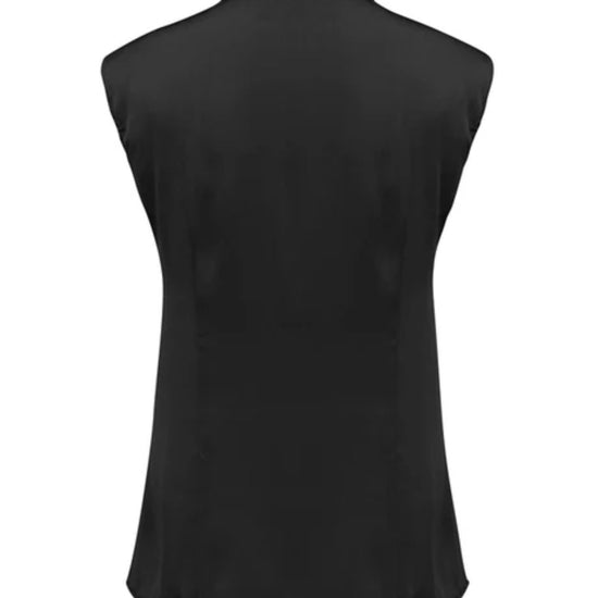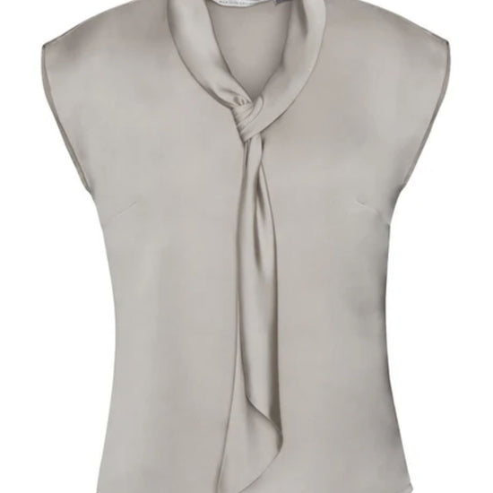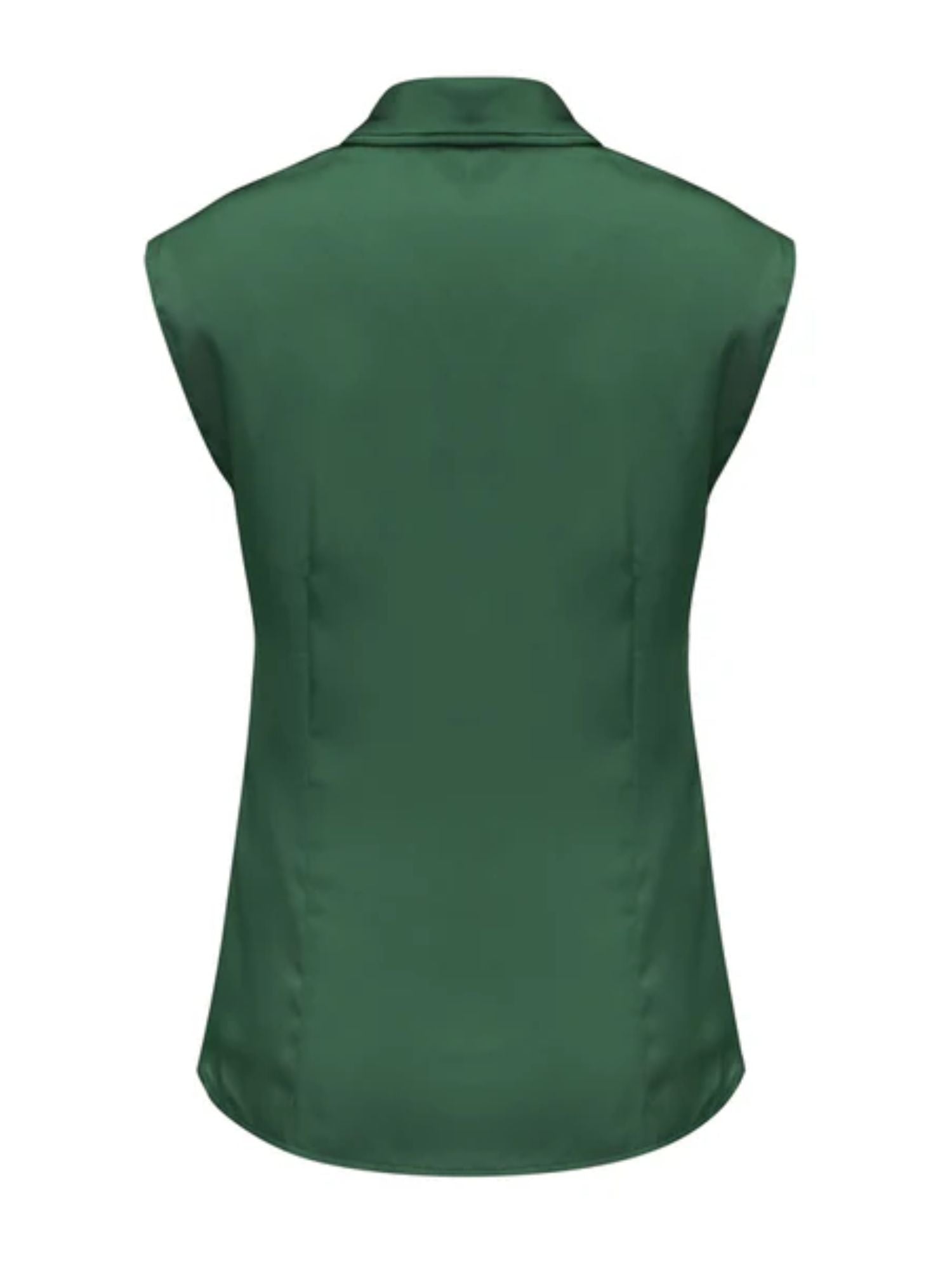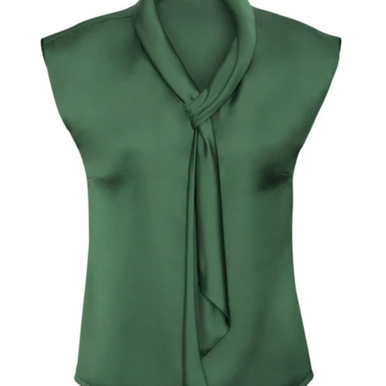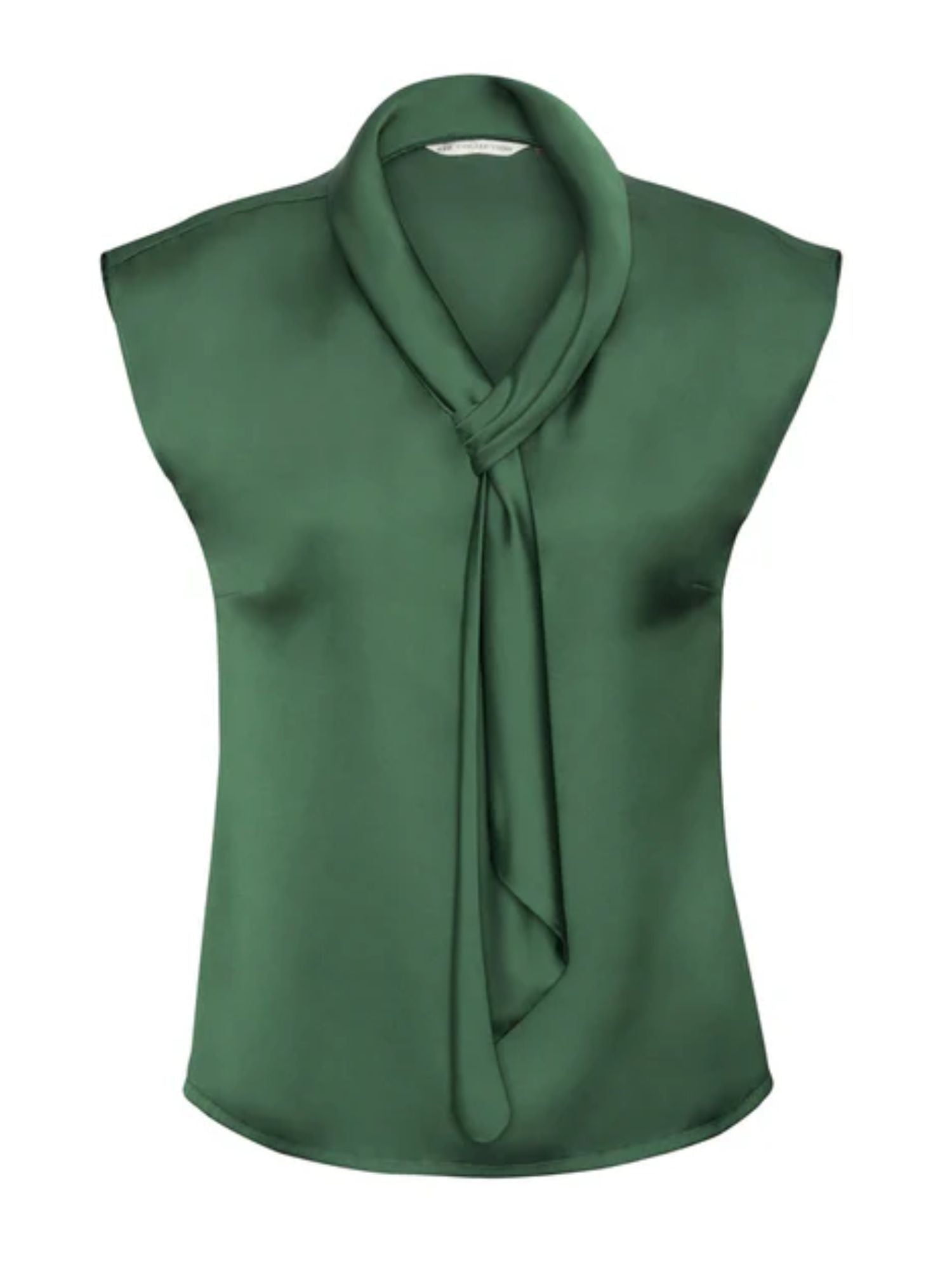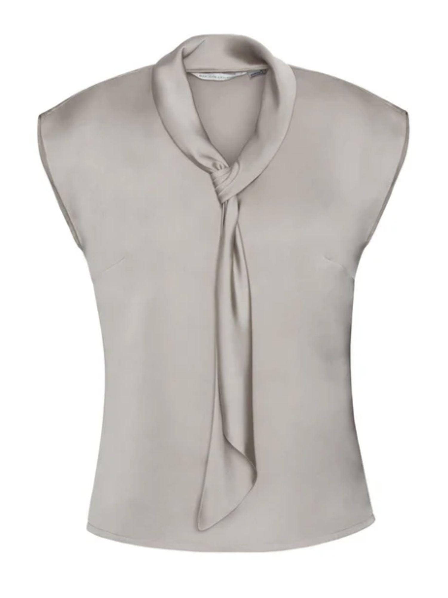 Ladies satin tie neck top is easy care and made of 100% polyester.