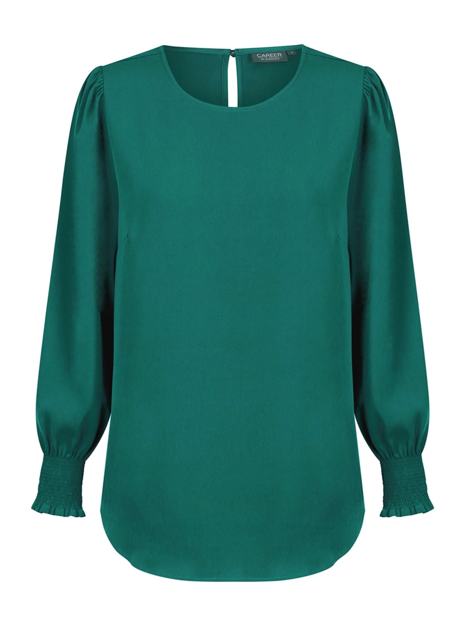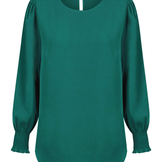 This long sleeve top with decorate cuff sleeves is the perfect way for you to look classy and professional in the work place. A keyhole back closure allows for a simple clean front that hangs beautifully. With the luxe twill fabric you also get machine washable so this can be your next easy everyday wardrobe item.