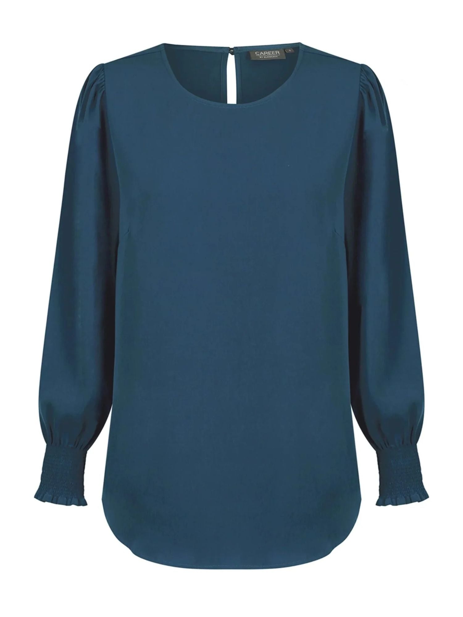 This long sleeve top with decorate cuff sleeves is the perfect way for you to look classy and professional in the work place. A keyhole back closure allows for a simple clean front that hangs beautifully. With the luxe twill fabric you also get machine washable so this can be your next easy everyday wardrobe item.