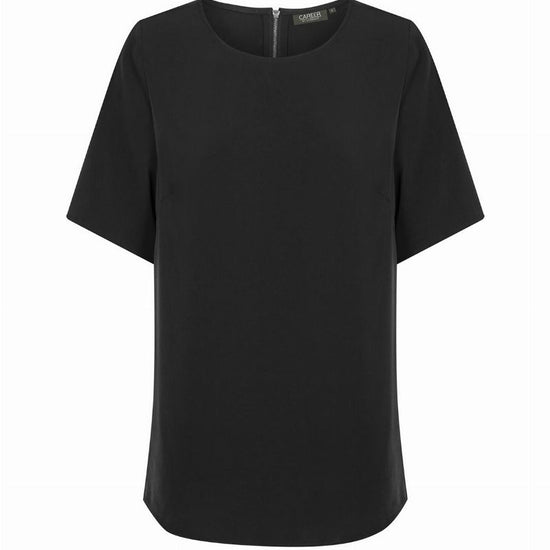 The short sleeve shell Taylor top is fabricated from a luxe twill fabric for a comfortable feel and refined polished look. It hangs beautifully off the shoulders, has an exposed zipper at center back and its construction means it is durable, moisture resistant and easy to care for.