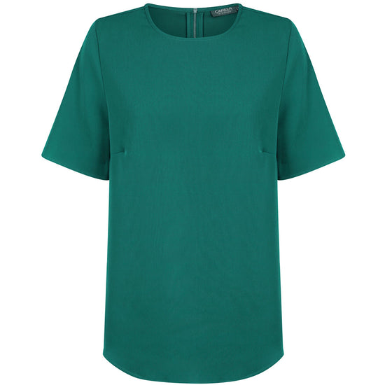 The short sleeve shell Taylor top is fabricated from a luxe twill fabric for a comfortable feel and refined polished look. It hangs beautifully off the shoulders, has an exposed zipper at center back and its construction means it is durable, moisture resistant and easy to care for.