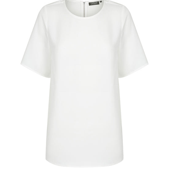 The short sleeve shell Taylor top is fabricated from a luxe twill fabric for a comfortable feel and refined polished look. It hangs beautifully off the shoulders, has an exposed zipper at center back and its construction means it is durable, moisture resistant and easy to care for.
