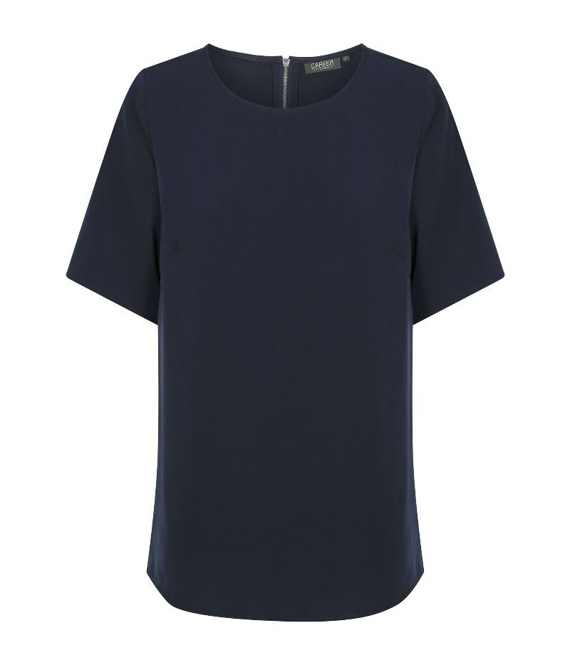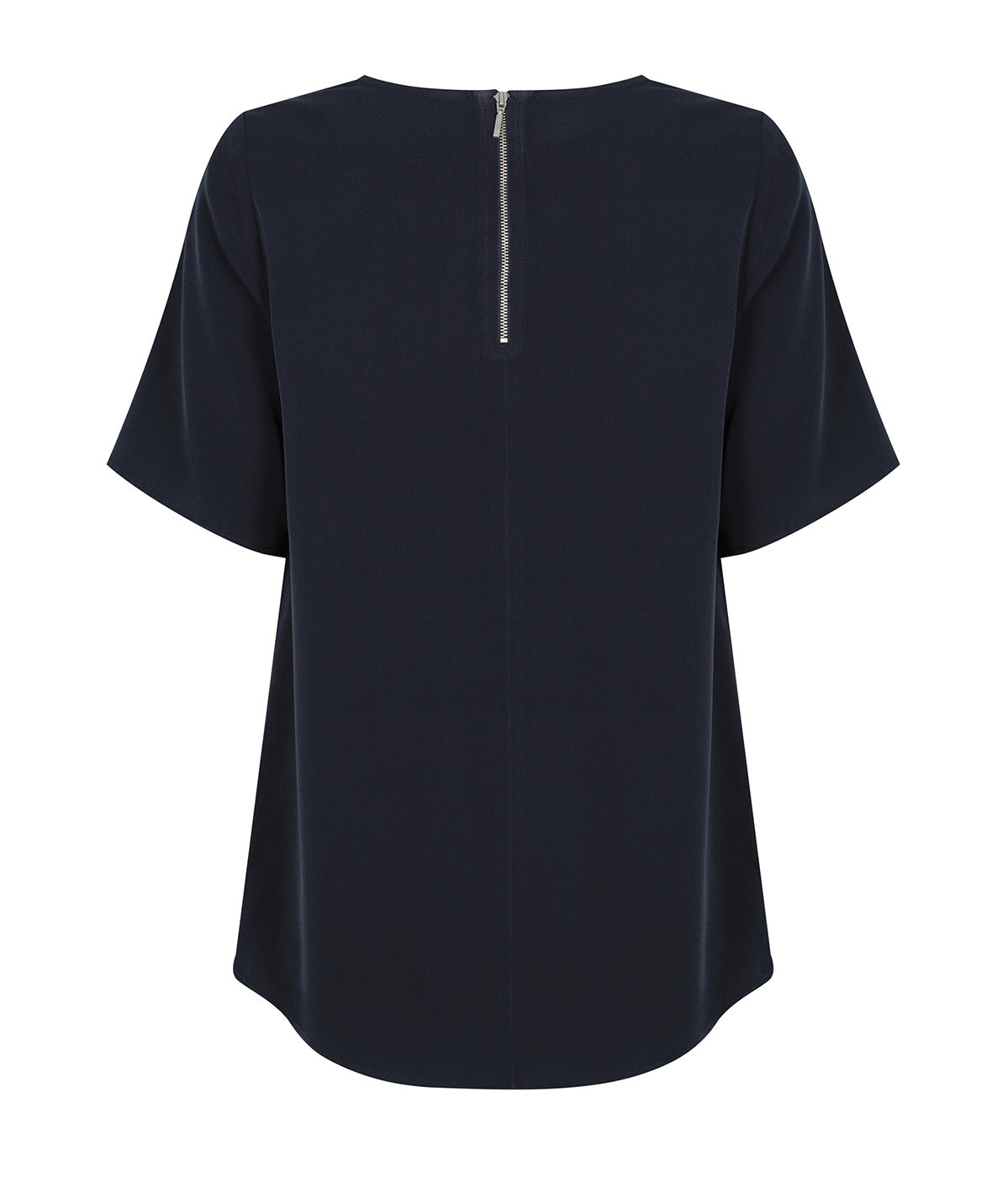 The short sleeve shell Taylor top is fabricated from a luxe twill fabric for a comfortable feel and refined polished look. It hangs beautifully off the shoulders, has an exposed zipper at center back and its construction means it is durable, moisture resistant and easy to care for.