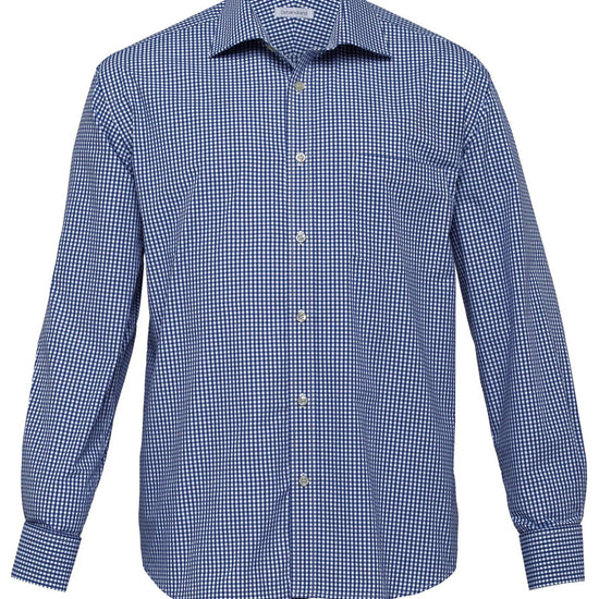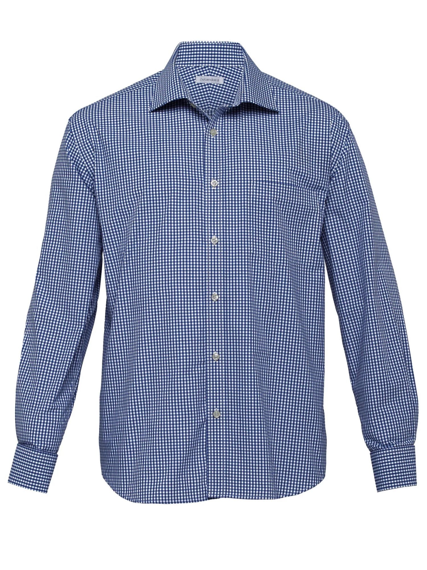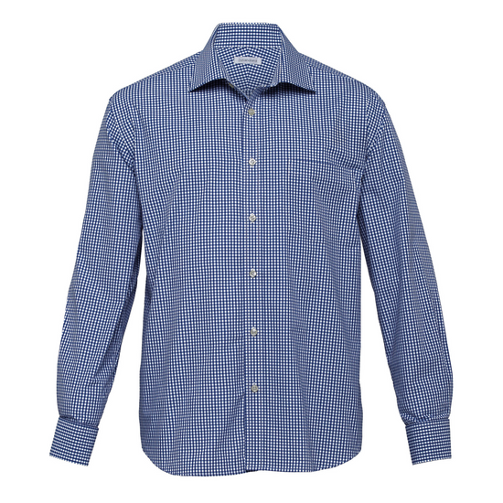65% Polyester/, 35% Cotton yarn dyed gingham check. Long sleeve classic fit shirt with fashionable collar/, single breast pocket and french cuffs.