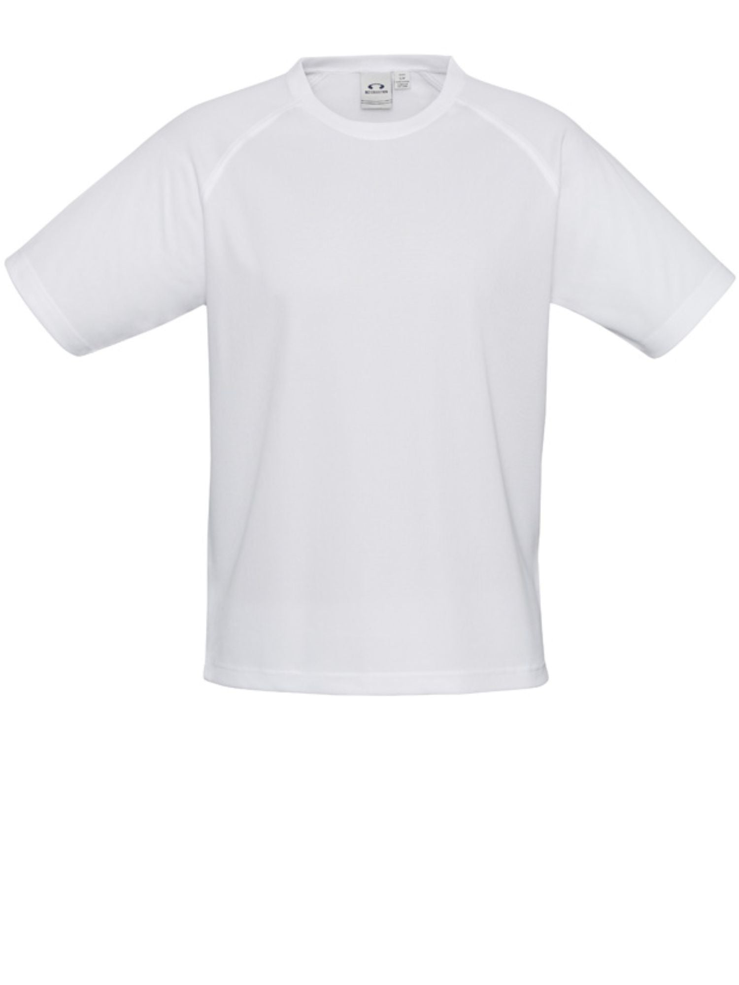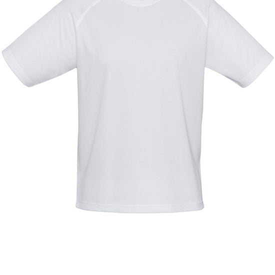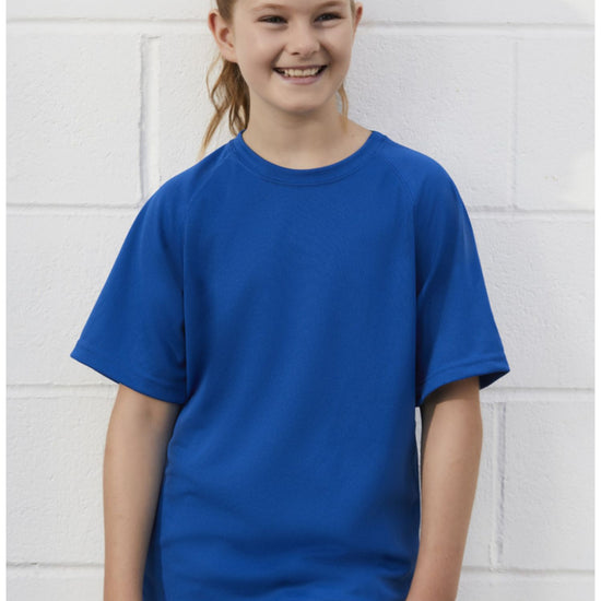 Kids Tee with a self fabric crew neck and durable flat raglan armholes. Made from new generation mesh which is 100% Breathable Polyester/, 145 GSM and excellent UPF rating.