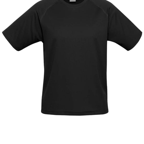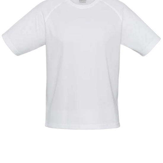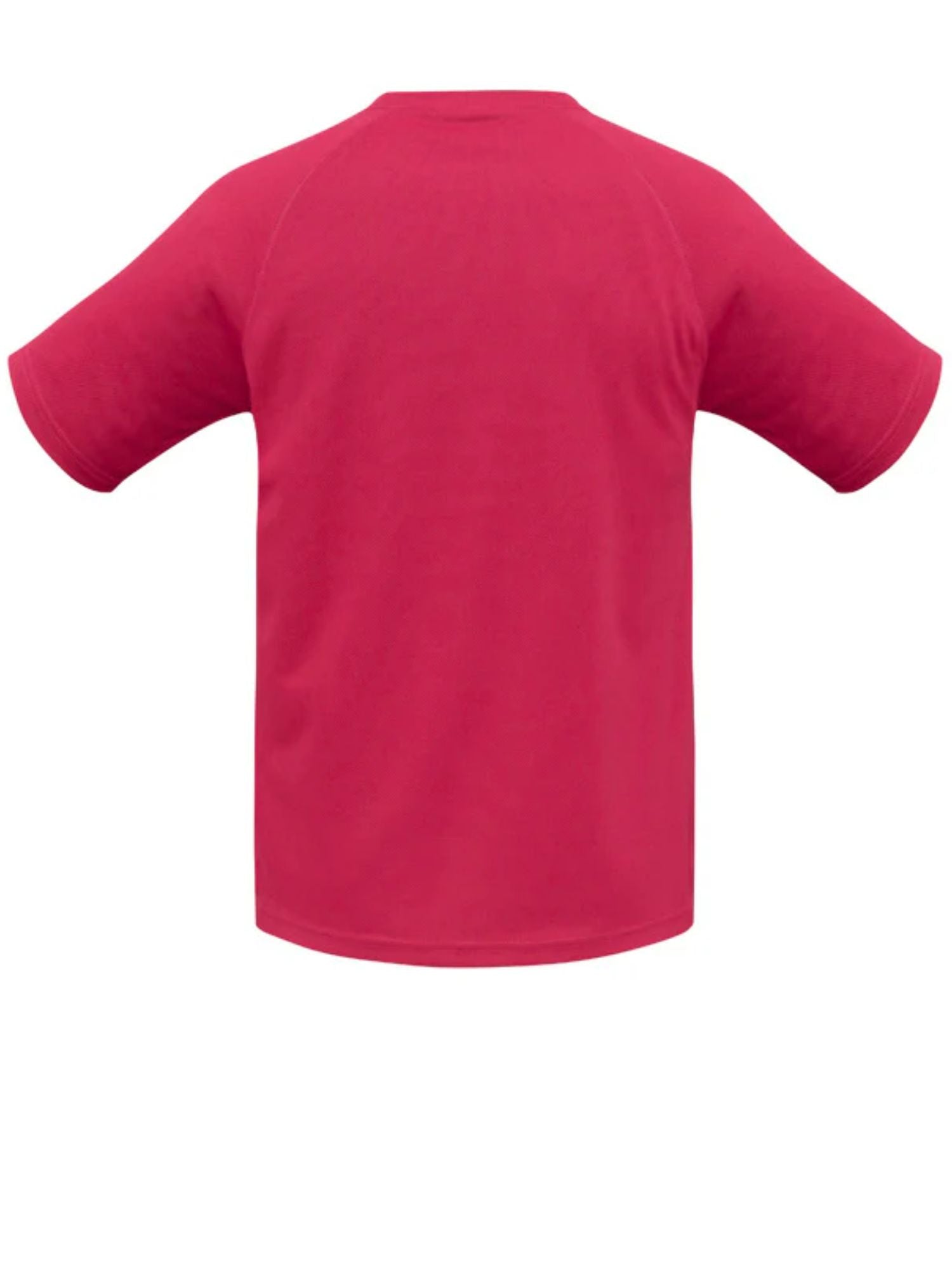 Mens Tee with a self fabric crew neck and durable flat raglan armholes. Made from new generation mesh which is 100% Breathable Polyester/, 145 GSM and excellent UPF rating.