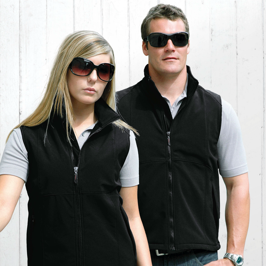 95% Polyester/, 5% elastane softshell bonded with anti-pill microfleece. Wind resistant/, breathable and showerproof. Tapered fit/, two way stretch for comfort/, two zippered side pockets/, high-zip plaquet with rubber puller and internal storm flap. Size XXS and XS slightly tapered fit for women.