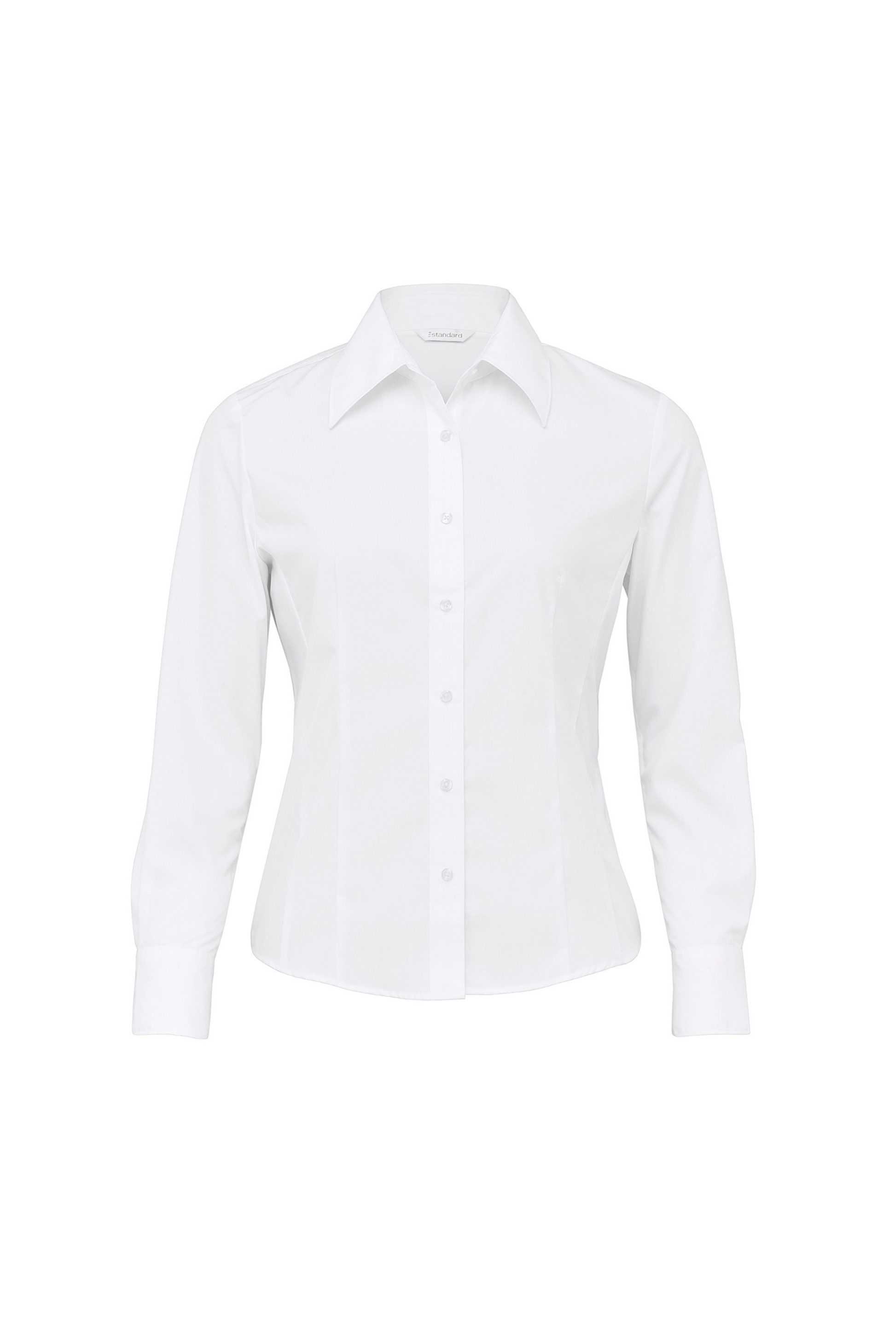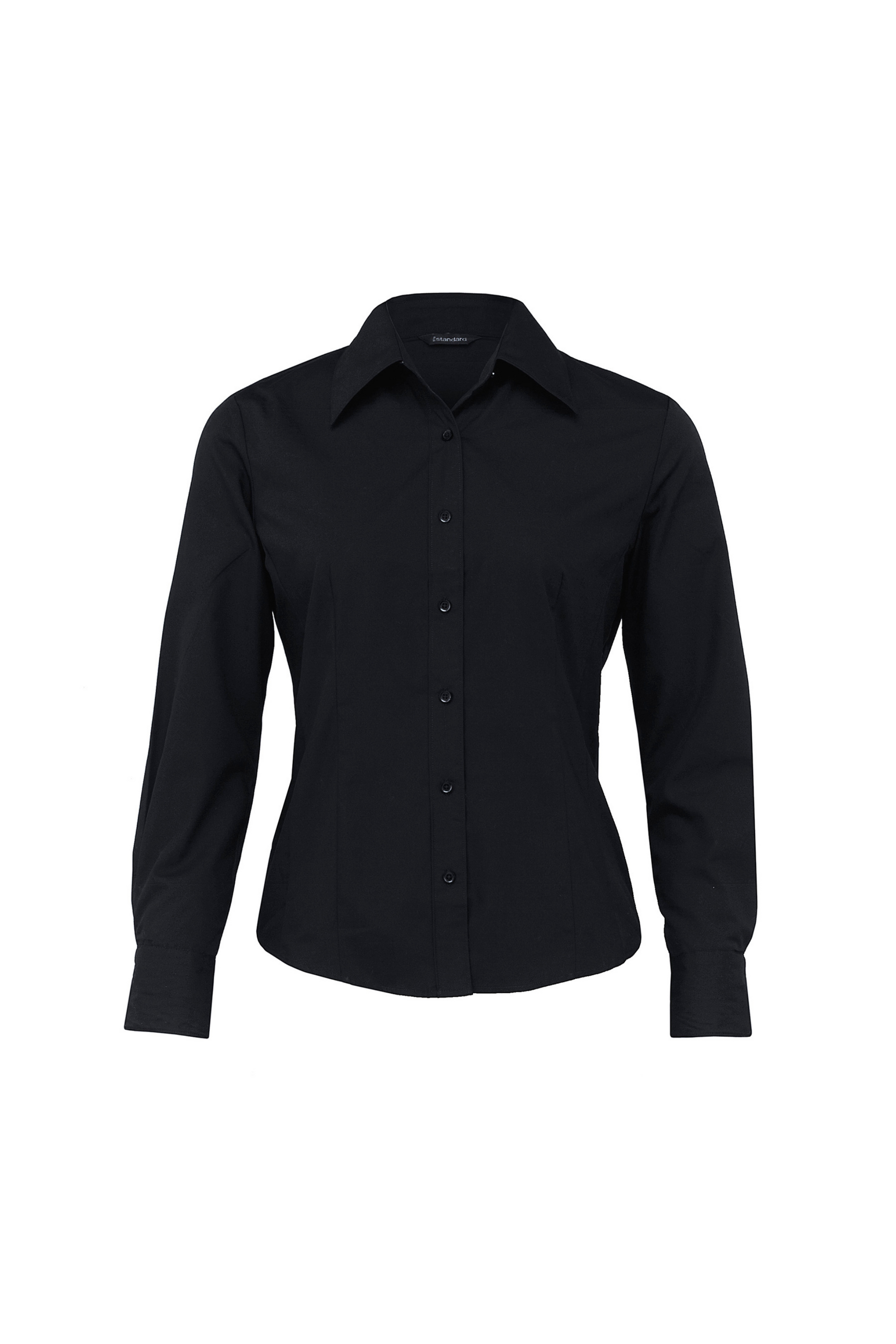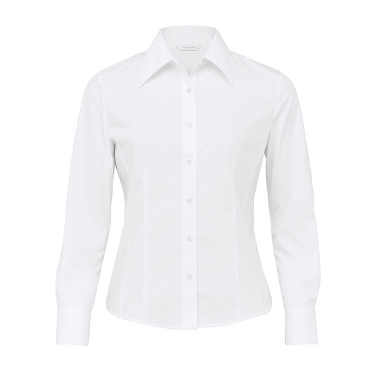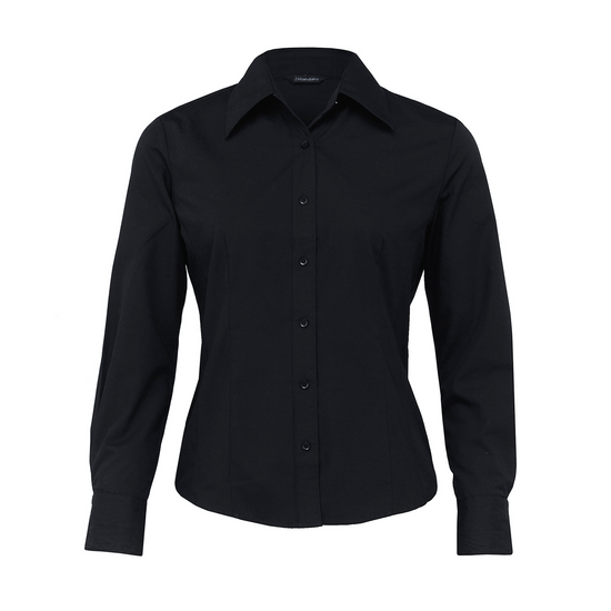45% Polyester 55% cotton. Shaped body detailing front and back. Long sleeves