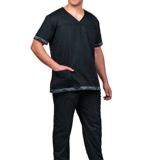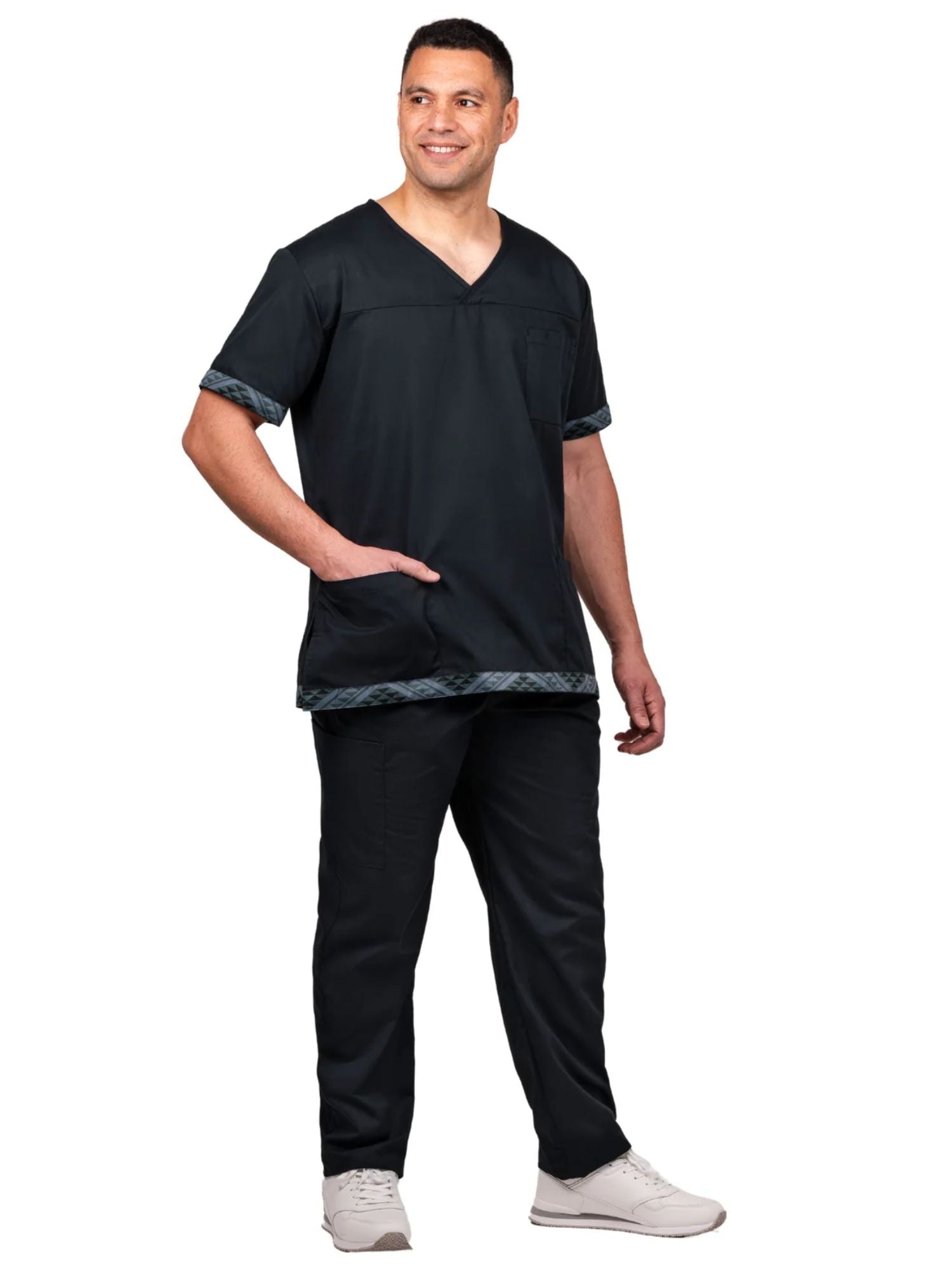 The MR35 Unisex Scrub Top is designed for demanding theatre environments, featuring a chest pocket with a pen divider, a side fabric loop for I.D. tags, and hidden pockets for efficiency. Made from a durable polyester-cotton blend, it offers breathable comfort and retains its colour through multiple high-temperature washes.